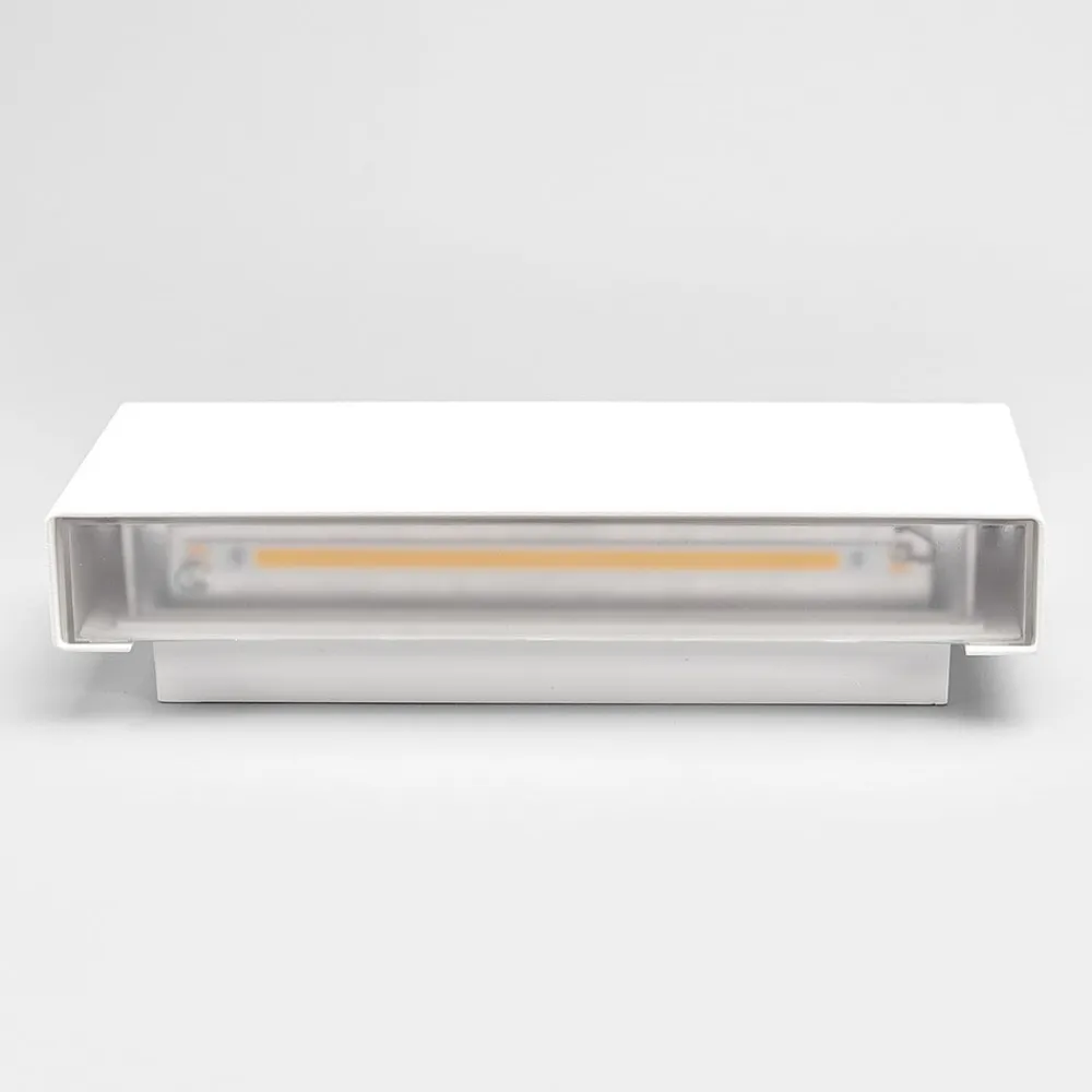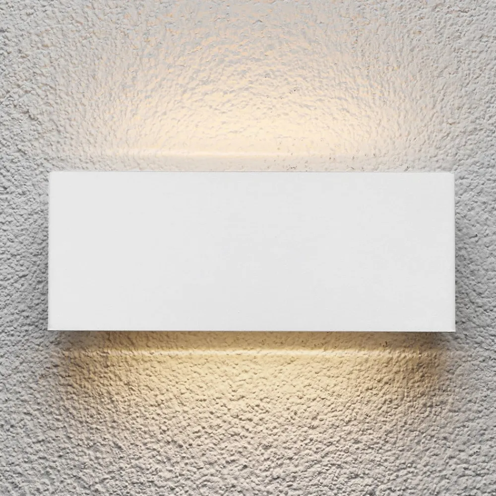 Safira udendørs LED-væglampe i hvid: elegance og beskyttelse til udendørsarealer Safira udendørs LED-væglampe i hvid kombinerer moderne design med høj funktionalitet. Den er fremstillet af robust rustfrit stål, aluminium og polykarbonat og har ikke kun et attraktivt udseende, men også holdbarhed og modstandsdygtighed. Med en kapslingsgrad på IP44 er den ideel til udendørs brug og trodser pålideligt elementerne. Den varmhvide lysfarve skaber en behagelig og indbydende atmosfære, der forbedrer ethvert udendørs område, mens Safira-armaturets permanent integrerede LED-lyskilde garanterer ensartet og effektiv belysning. Takket være det moderne design passer armaturet problemfrit ind i forskellige arkitektoniske stilarter og sætter stilfulde accenter. Det hvide farveskema understreger den tidløse elegance og gør Safira til et alsidigt belysningselement, der både er funktionelt og æstetisk tiltalende.