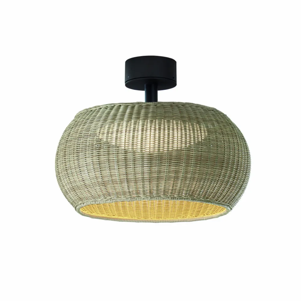 Peris udendørs loftlampe – stemningsfuldt lys til terrassen Perris udendørs loftlampe med en skærm vævet af et syntetisk stof kombinerer stilfuldt design med høj funktionalitet. Med en kapslingsgrad på IP54 er dette armatur ideelt til udendørs brug, f.eks. på terrasser. Den integrerede LED-lyskilde sikrer energieffektiv belysning og understreger produktets designorientering. Perris loftlampen er fremstillet i Europa og står for kvalitet og lokalt håndværk – eksternt dæmpbar (TRIAC)