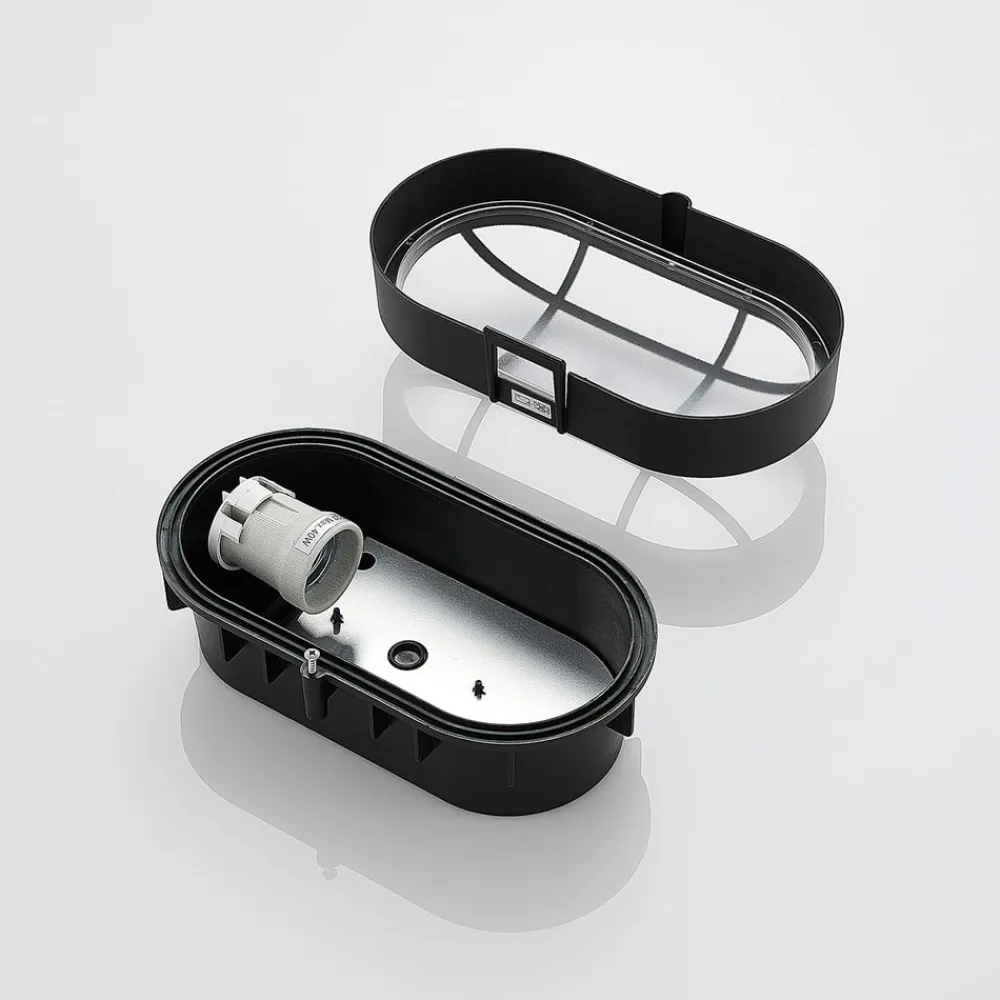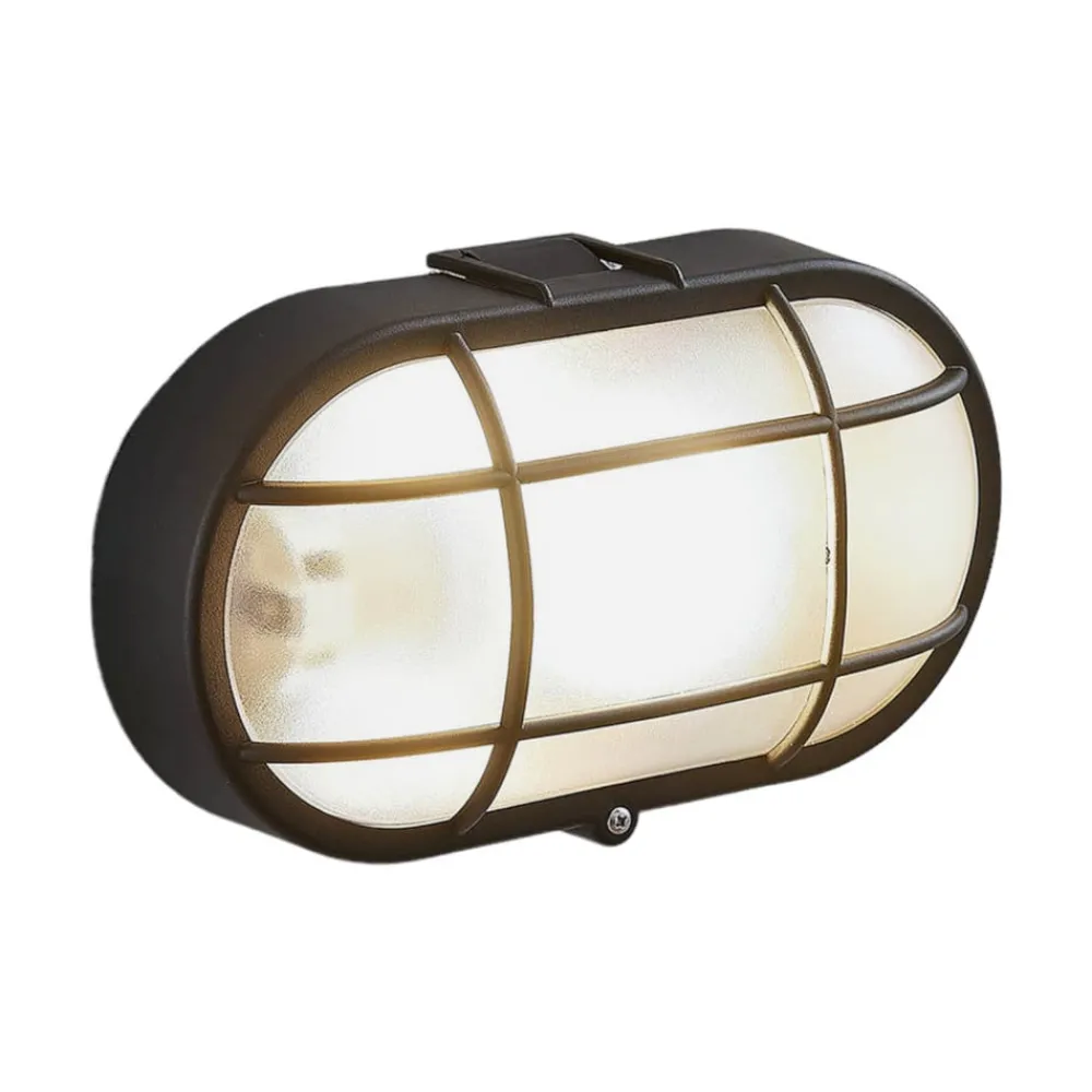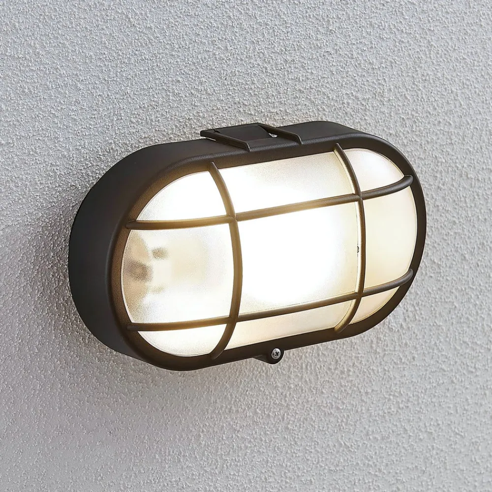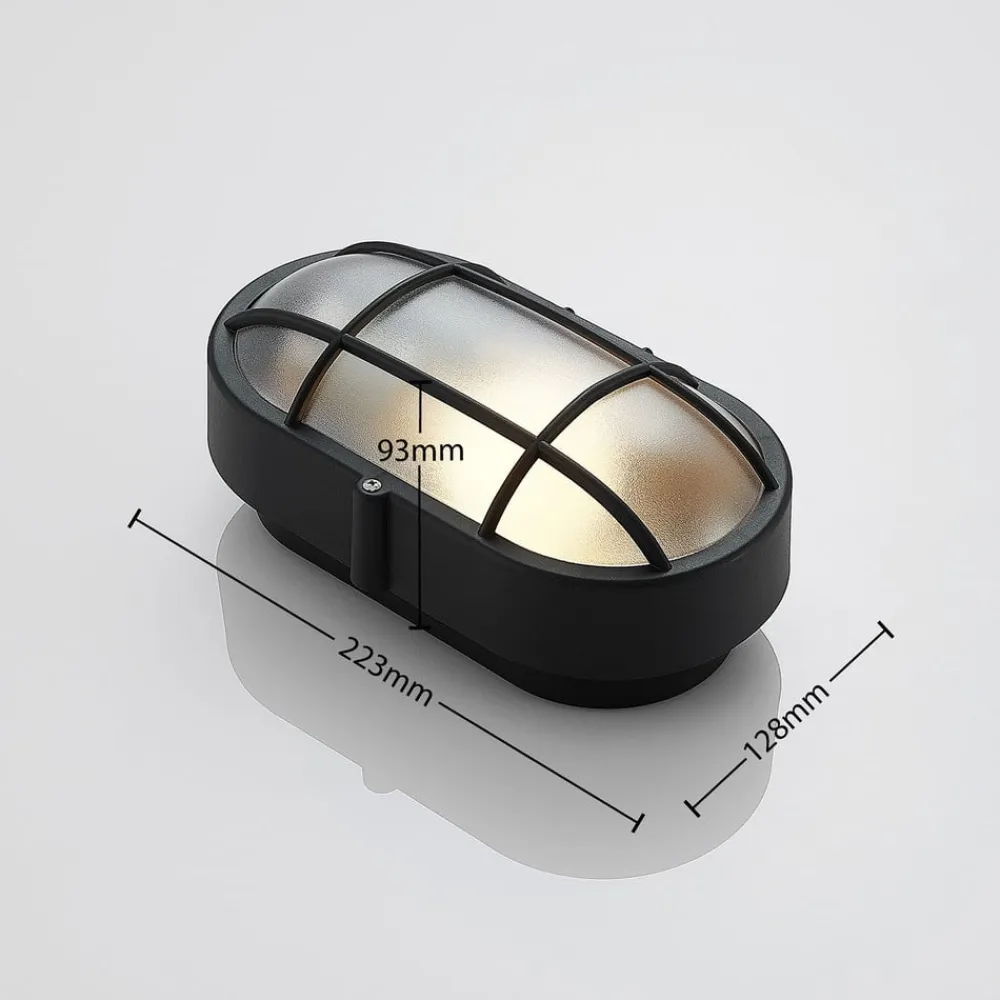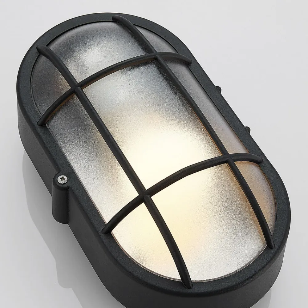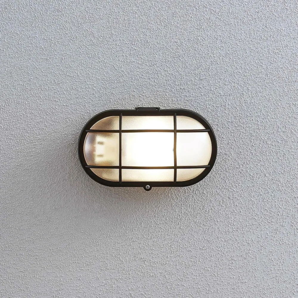 Elliptisk udendørs væglampe Alisha med sort finish og gitterafdækning, saltvandsresistent