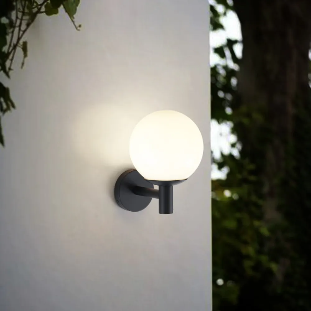 Udendørs væglampe Dangan med 1 lyskilde og opal hvid lampeskærm