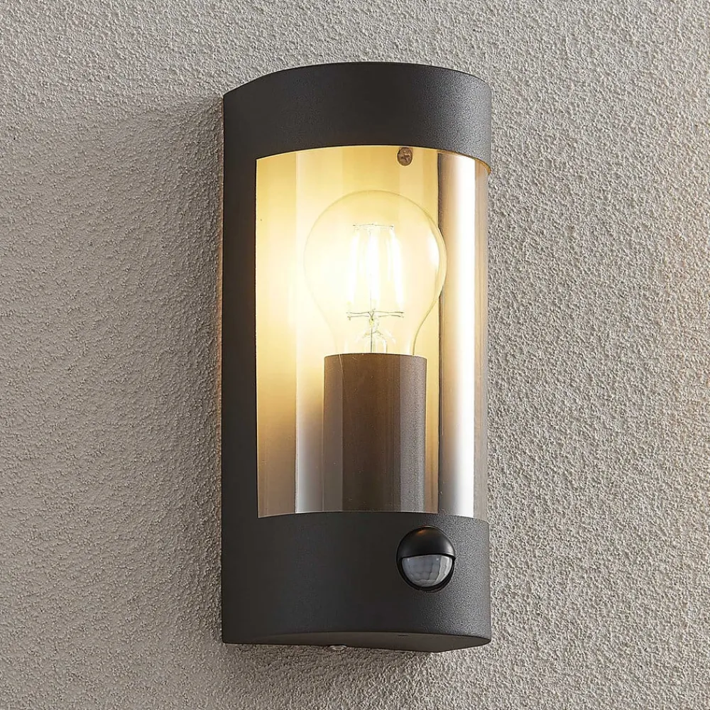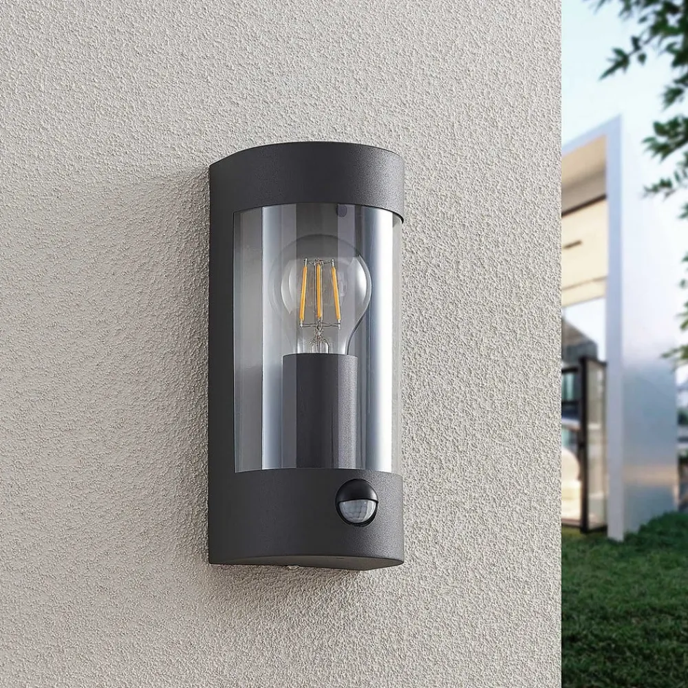 Lindby udendørs væglampe Junias, 24 cm, antracit, sensor