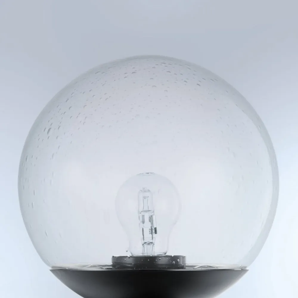 L 400 S: Sensor udendørs væglampe med kugleformet skærm af krystalglas Den udendørs væglampe L 400 S med bevægelsessensor udsender et fascinerende lys hele vejen rundt, der udstråler modernitet og stil, selv når den ikke er tændt, og som passer til mange facadedesigns. Udendørslampen har også en uovertruffen funktionalitet. Intet undslipper bevægelsessensoren på 240°. Registreringsområdet har en rækkevidde på en til tolv meter, som kan reduceres til 1 m ved hjælp af dækpladen. Det medfølgende dæksel kan skæres til. Tidsindstillingen kan varieres fra 10 sekunder til 15 minutter. Lysstyrken kan indstilles mellem 0 % og 50 %. Det mundblæste krystalglas skaber en særlig effektiv lysatmosfære. Rammen er lavet af vejrbestandig plast i et robust design. Med kapslingsgrad IP44 er armaturet også udstyret til at modstå barske vejrforhold – 180° åbningsvinkel – Sensorsystem: 5 detekteringsniveauer med 276 koblingszoner – Skumringsindstilling: 2 – 2.000 lux – Monteringshøjde maks. 6 m
