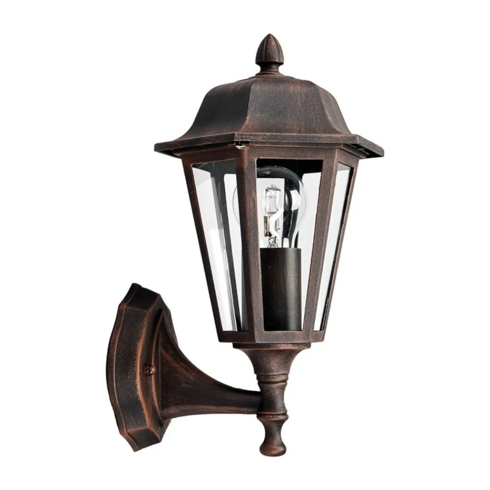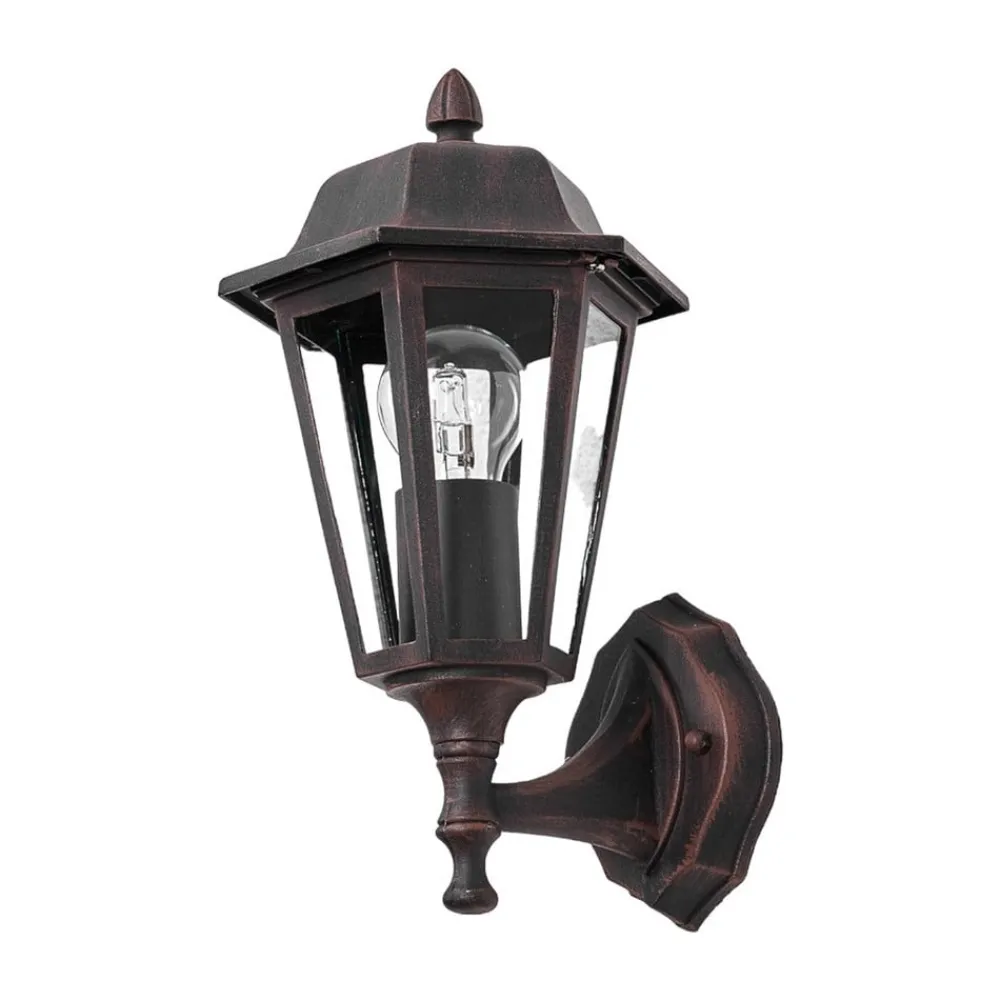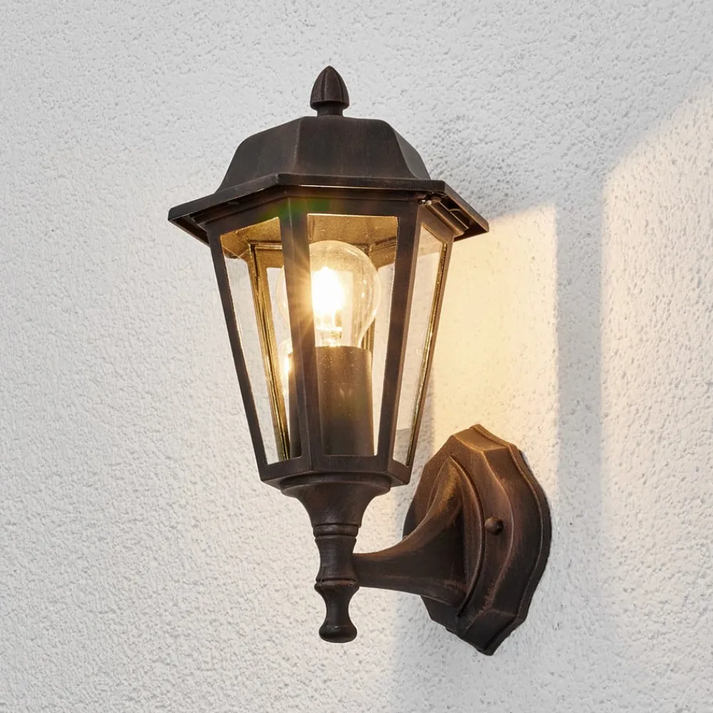 Lamina udendørs væglampe i form af en lygte Denne udendørs væglampe har en klassisk form, der ligner en lygte, ikke bare ved andet øjekast. I alt seks klare glasruder er sat ind i siderne af metalrammen, som har en slags tag. Smukke detaljer pryder også det overordnede look. Lamina udendørs væglampe er velegnet til mange klassisk designede miljøer og kan monteres med alle egnede lamper, der har en E27-sokkel. Det gælder ikke kun gløde- og halogenpærer, men også spare- og LED-pærer.