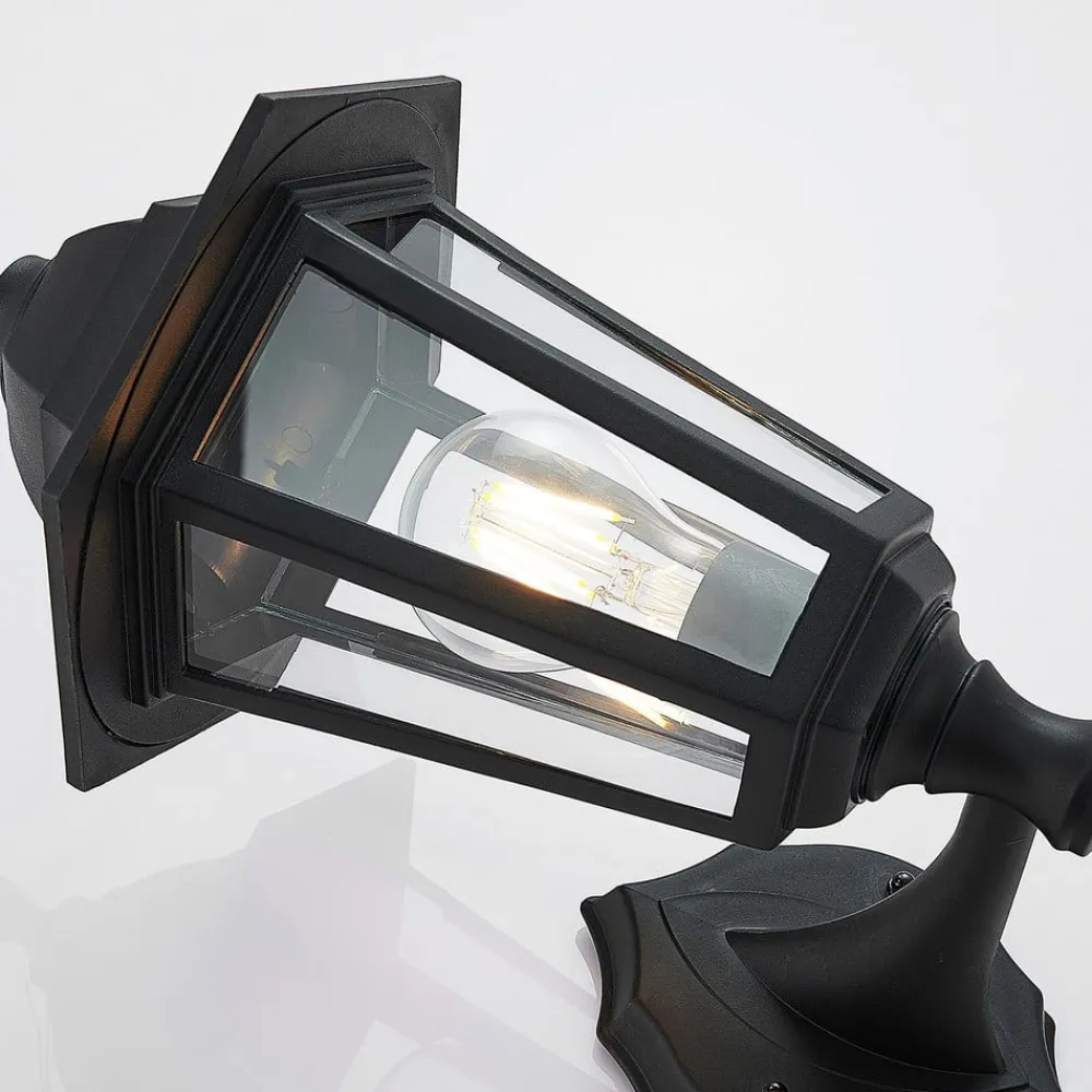 Sort, nostalgisk udendørs væglampe Nane i lanternestil, saltvandsresistent
