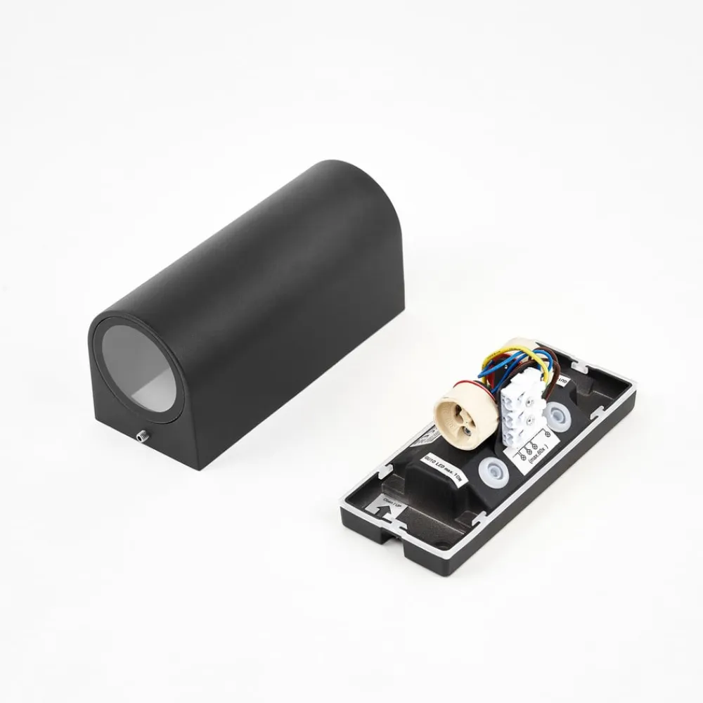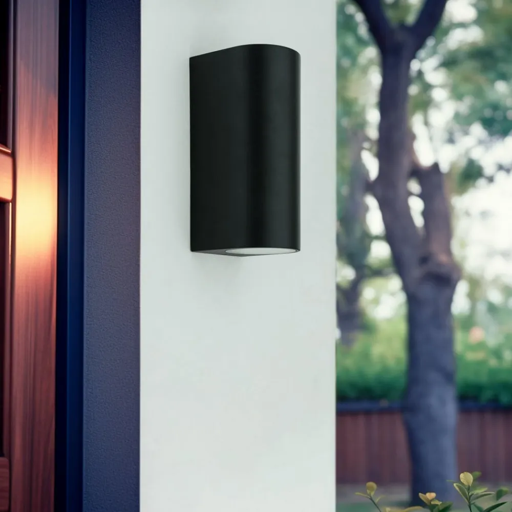 Vejrbestandig udendørs væglampe Tetje af sort aluminium i en cylindrisk form og praktisk sæt med 4 Tetje-væglampen giver pålidelig belysning til udendørs områder og imponerer med sit enkle design. Dens krop har et rørformet udseende og kommer i en enkel sort farve. Med en kapslingsgrad på IP65 er den udendørs væglampe Tetje støvtæt og beskyttet mod vandstråler, hvilket gør den til en vejrbestandig ledsager til udendørsarealer. Tetje kan kombineres med andre lamper i serien for at skabe et harmonisk helhedsindtryk og fremhæve husets arkitektoniske stil. Den leveres også i et praktisk sæt med 4 stk.