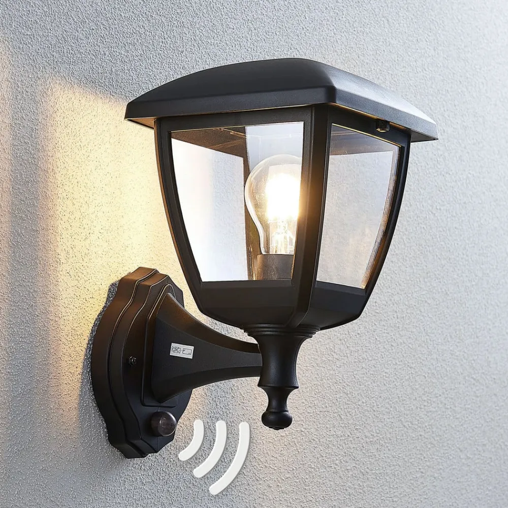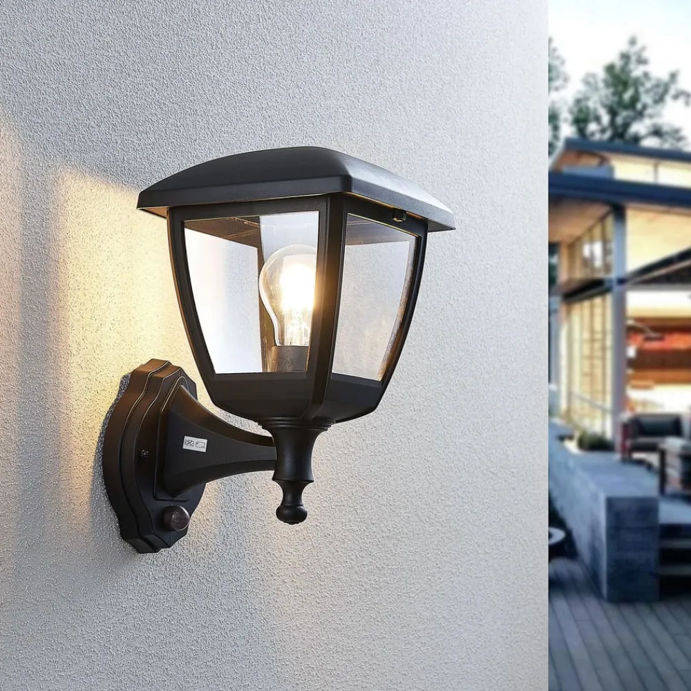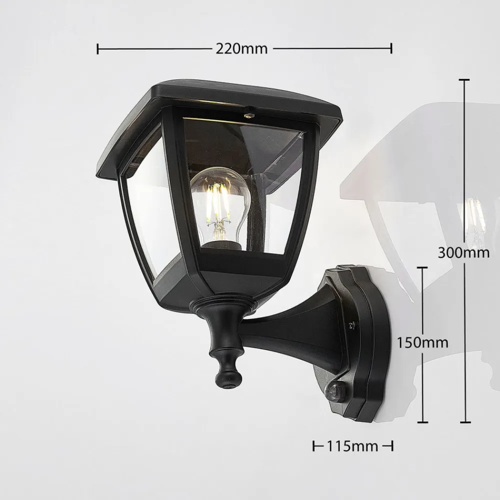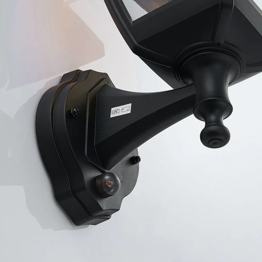 Sort udendørs væglanterne Acelya med klar plastindsats og lanterneformet design