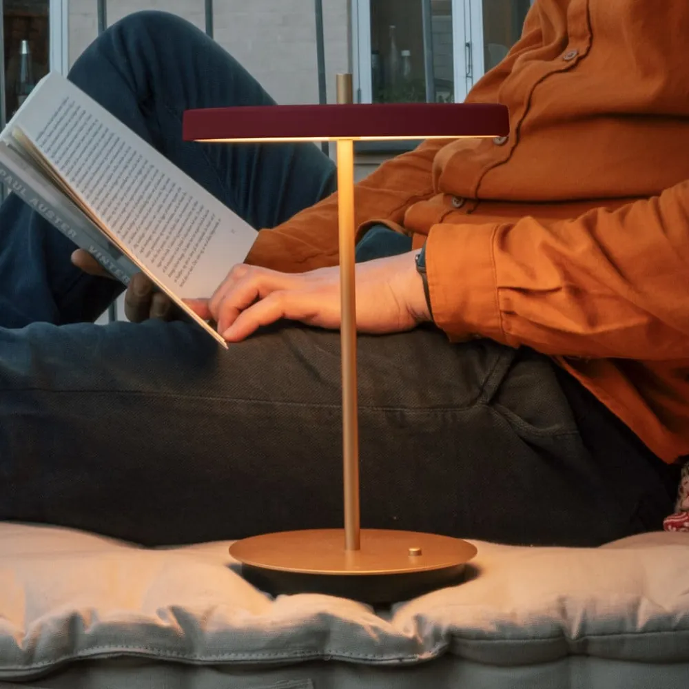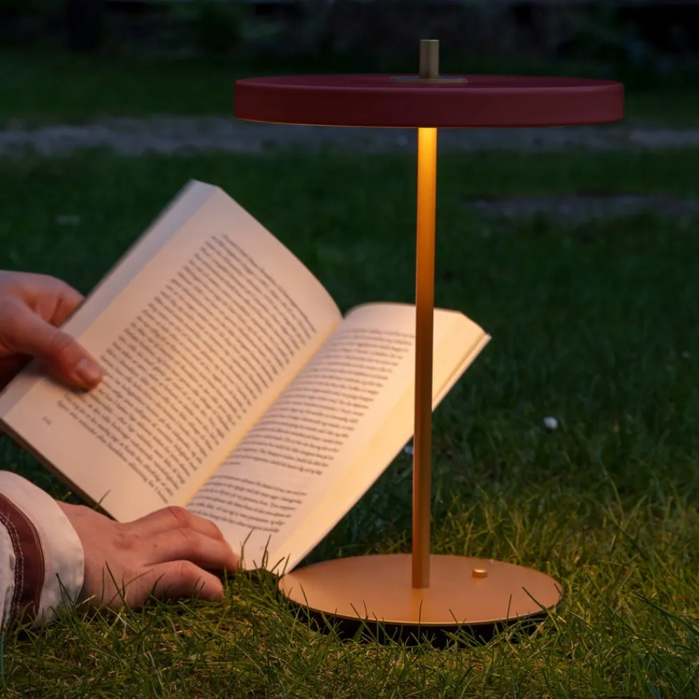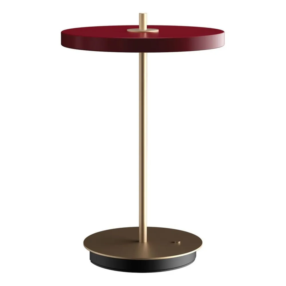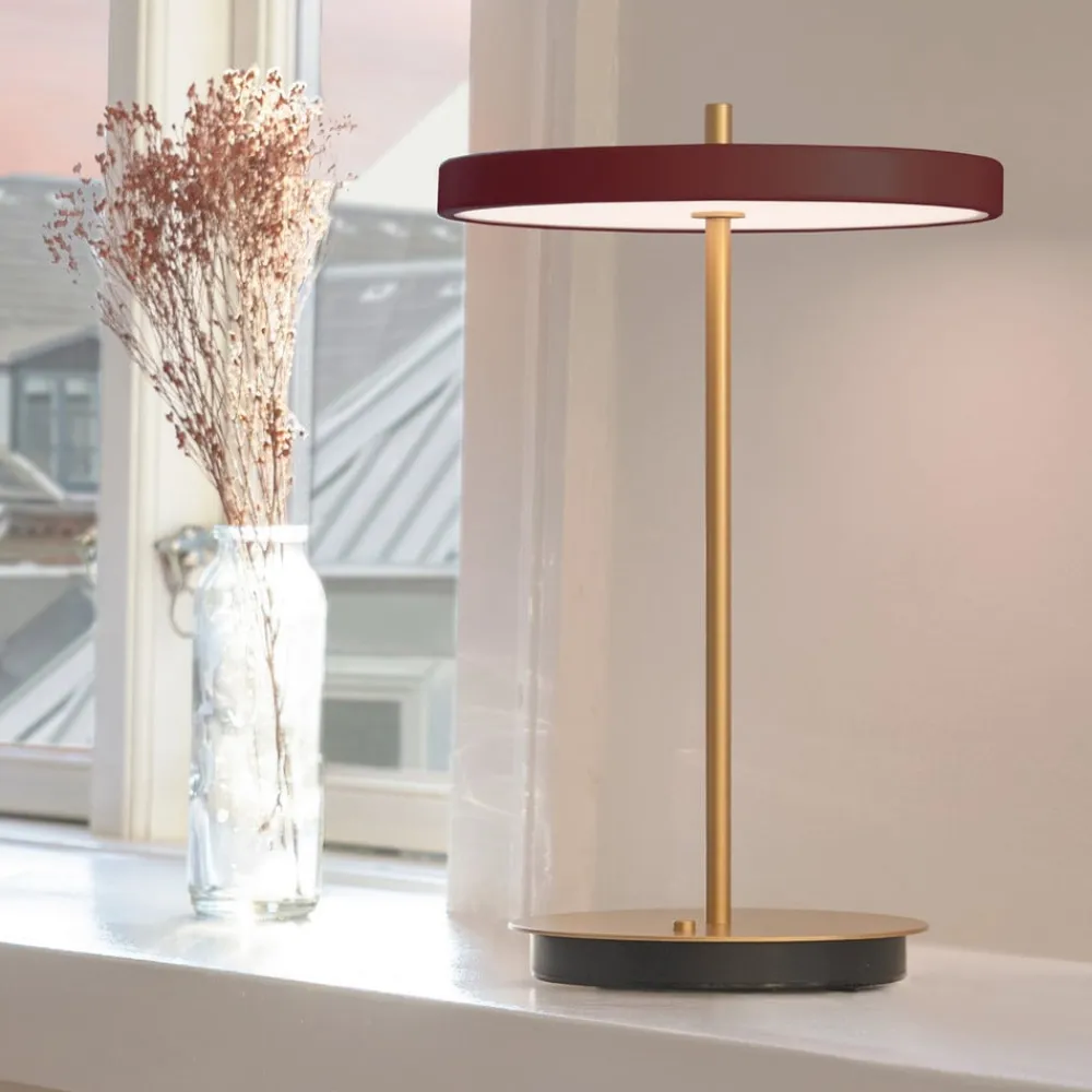 UMAGE Bordlamper>LED-batteridrevet bordlampe Asteria Move rubinrød/messing 31 cm