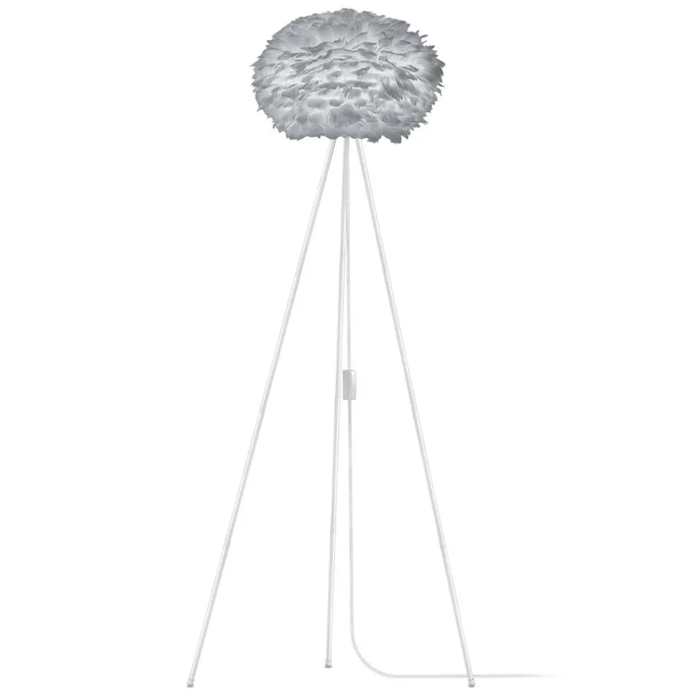 Kombinationen af to designobjekter fra den danske designer Søren Ravn Christensen, har skabt standerlampen Eos medium, der er en helt speciel lampekreation: Her kombineres den lysegrå skærm på Eos medium med det hvidlakerede trebenede gulvstativ, hvilket har resulteret i en vidunderlige standerlampe, der fremstår meget attraktiv, hvad enten der er tændt eller slukket.