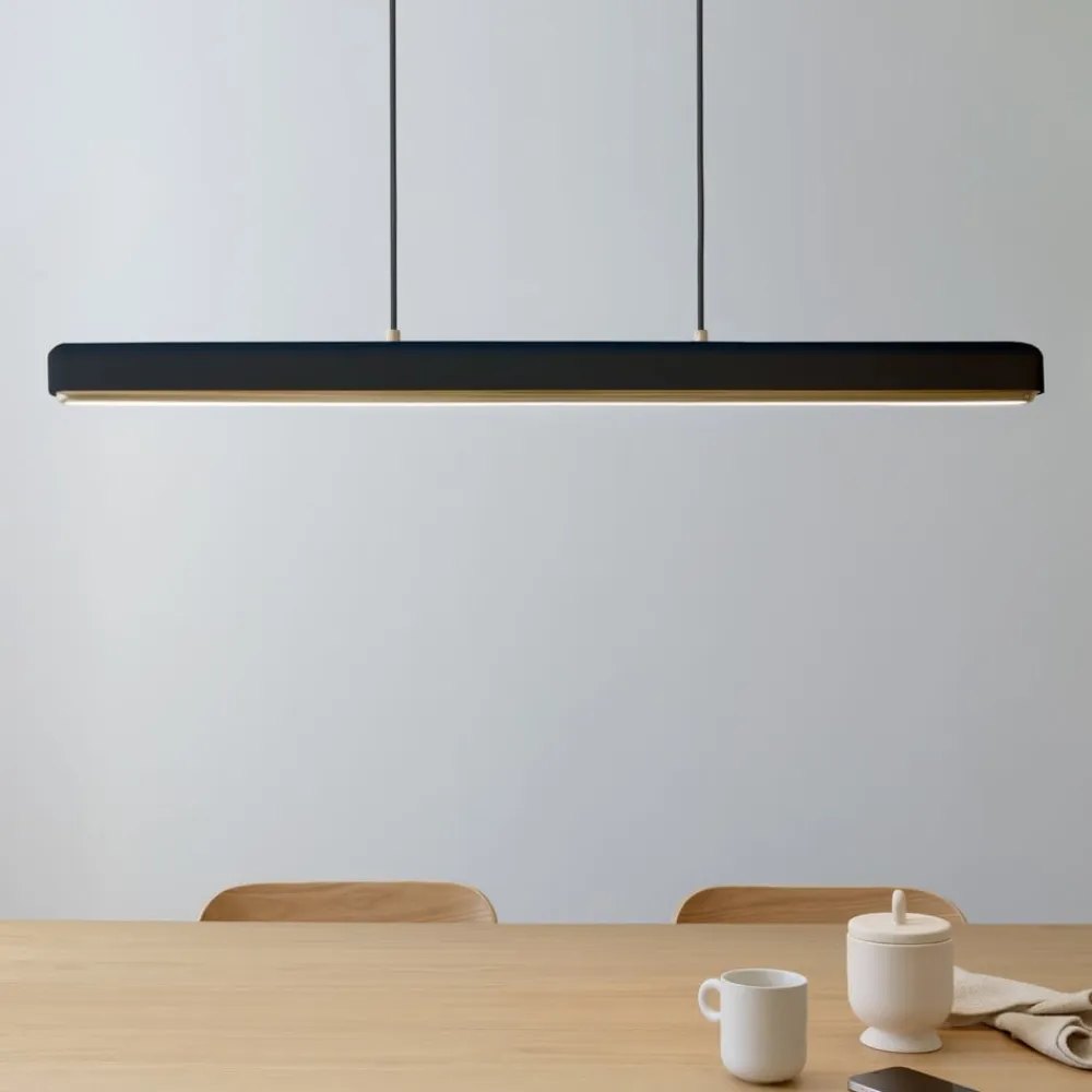 Hazel Branch LED-hængelampe med udskiftelig lysfarve (CCT) Hazel Branch LED-hængelampen fra det danske lampefirma UMAGE har et funktionelt, men elegant design. Armaturet med den lange, smalle skærm er lavet af aluminium og leveres med et farvekoordineret tekstilkabel. Takket være teknologien og funktionaliteten i lysdesignet er armaturet ikke kun velegnet til brug over et spisebord eller en køkkenbænk i private omgivelser, men også til at oplyse mødelokaler i den kommercielle sektor. Armaturet er udstyret med et LED-panel bag en hvid diffusor, der sikrer en blændfri, blød lysstråle. To knapper på toppen af lampeskærmen gør det muligt at justere lystemperatur og lysintensitet: Lysfarven kan indstilles til fire niveauer (varmhvid 2.700 K, varmhvid 3.000 K, universalhvid 4.000 K og dagslys 6.000 K), og lyset kan dæmper til fire niveauer (niveau 1 300 lm, niveau 2 550 lm, niveau 3 900 lm, niveau 4 1.150 lm). Lysets særligt gode farvegengivelse med et indeks på Ra93 bør også understreges.