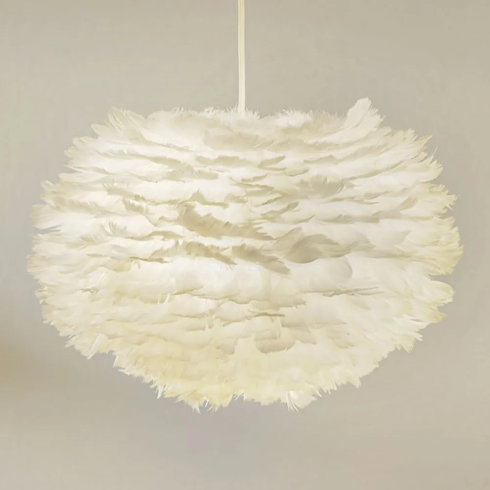 Hvid pendellampe Eos medium med skærm af gåsefjer