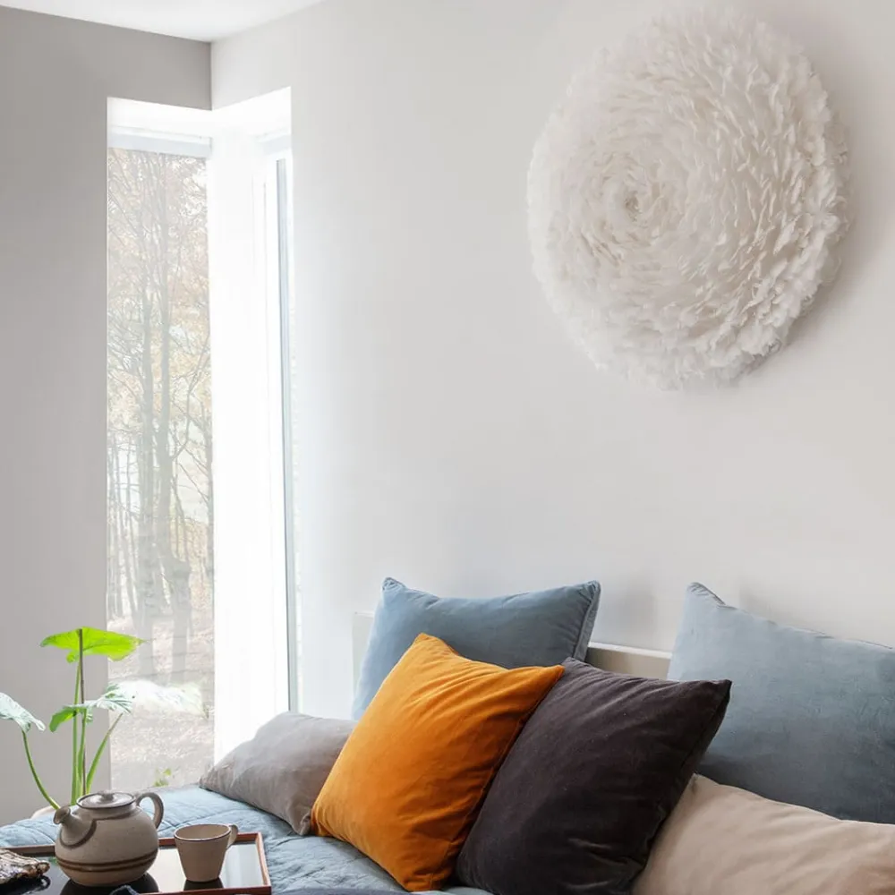 Fjerene former ikke kun udseendet af Eos store væglampe, men også det udsendte lys. Dette får en stærkt dæmpet, delikat karakter.