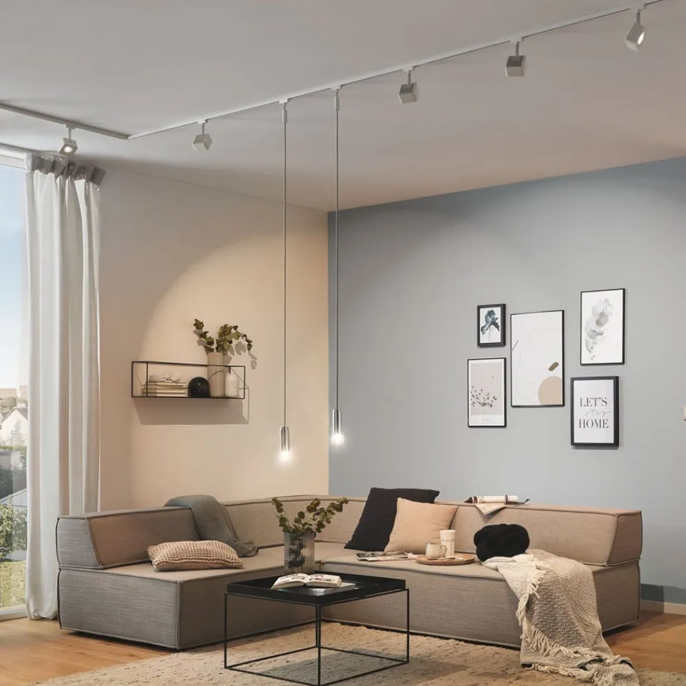 Med dette enkelte element til URail-skinnesystemet kan individuelle designkrav opfyldes perfekt. L-konnektoren gør det muligt at tilslutte 2 skinner til URail-systemet til hinanden i en vinkel på 90°.