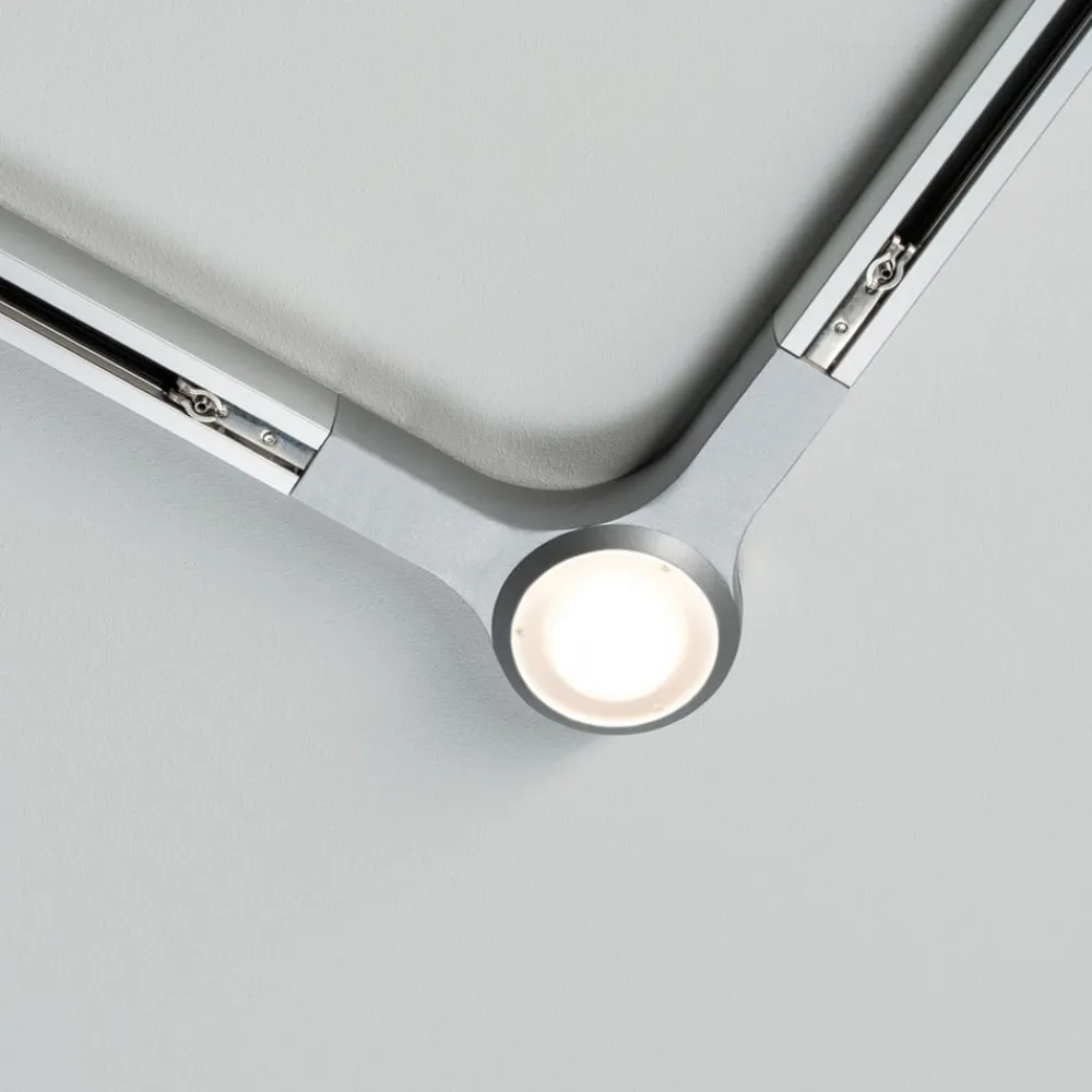 L-Connector med LED-teknologi – den dæmpbare L-forbindelse til URail-skinnesystemet L-Connector er et L-formet forbindelseselement til to URail-skinner og er derfor en ideel måde at udvide dit skræddersyede belysningssystem på. Dette forbindelseselement kan fastgøres til skinnerne ved simpel plug-in-installation og er velegnet til både loft- og vægmontering. En rund diffusor er placeret i vinklen på L’et, hvilket gør det muligt for de permanent installerede LED’er at skinne igennem i en 80° strålevinkel. Der er også en integreret dæmper til trinløs justering af lysstyrken. L-tilslutningen er lavet af metal og har en mat kromfinish.