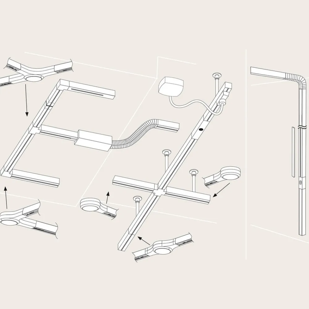 Line Connector LED-tilslutning kan installeres på både loft- og vægkonstruktioner ved hjælp af simpel plug-in-montering. Den indbyggede LED-lyskilde udsender varmt hvidt lys i en 80 ° strålevinkel ind i rummet med lidt blænding og indstiller små højdepunkter mellem de tilsluttede elementer. Takket være den integrerede lysdæmper kan linjestikkets lysstyrke varieres.
