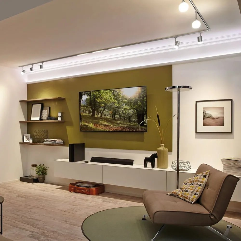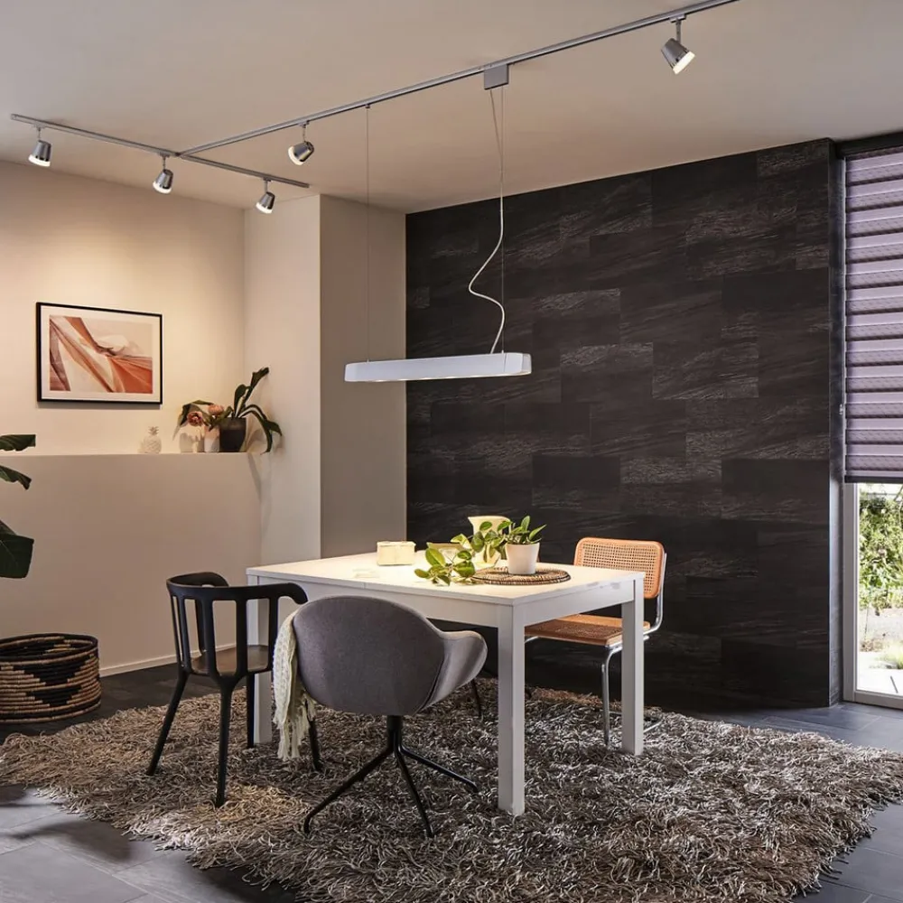 LED-spot i mat kromfinish til URail-skinnesystemet Denne minimalistiske spot fungerer som en udstyrsvariant til URail-skinnesystemet. Den er udstyret med en dæmpbar LED-pære. Den kan om nødvendigt udskiftes med andre GZ10- eller GU10-lamper på maks. 40 W. Der findes forskellige skærme med passende beslag til at skabe et komplet armatur – drejeligt – eksternt dæmpbart med følgende: RC Gira 0307 00/I02, RC Jung 225 T da, RC Kopp 8035.0208.0 /8078, RC Merten MEG 5136-0000, RLC Müller Paladin 873 030 LED