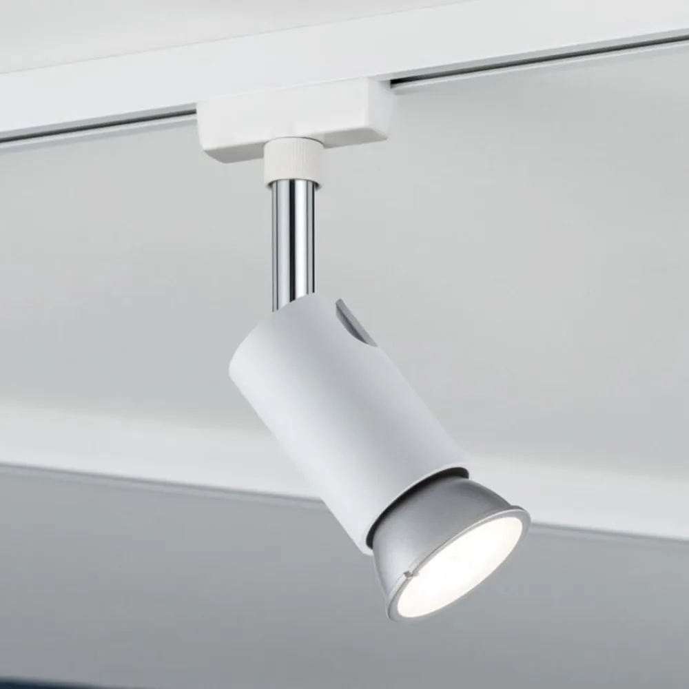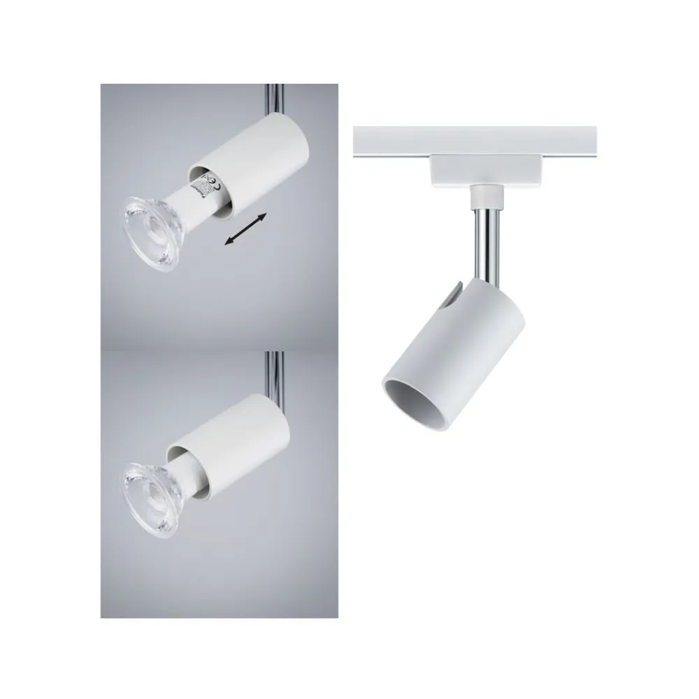 URail Spot Pure I giver fuld fleksibilitet ved valg af pære. Der kan anvendes alle pærer med GU10-fatning og en effekt på maks. 10 watt, så lysfarve og lysvinkel kan vælges helt efter belysningsønskerne. Spottenes diskrete design passer til enhver indretningsstil og åbner op for mange anvendelsesmuligheder. Velegnet til GU10-pærer i forskellige størrelser takket være den forskydelige blænde på lampehovedet.