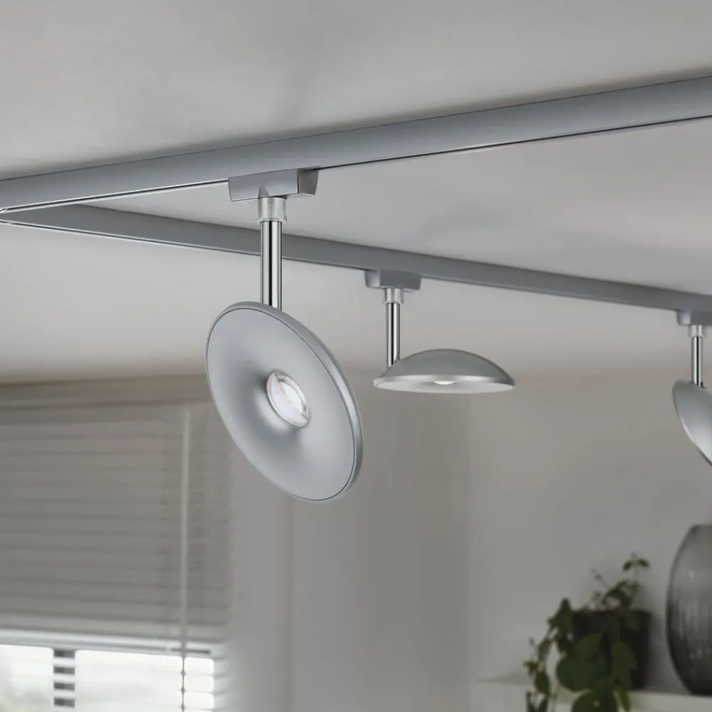 Sphere LED-spotlight med universalhvid lysfarve til skinnesystemet Sphere LED-spotlight til skinnesystemet URail udsender en særlig lyseffekt takket være den sfæriske linse, der er indbygget i spotlighten. Spotlightet kan justeres efter behov, f.eks. for at fokusere på bestemte områder i et rum eller endda et møbel eller en anden genstand. LED-spottet med forkromet holder og flad, rund lampekrop passer til enhver URail-skinne og er især velegnet til arbejdsområder eller køkkenet takket være sin universalhvide lysfarve – Dæmpbar med en passende dæmper (R+C f. elektr. transformer + 230V lamper)