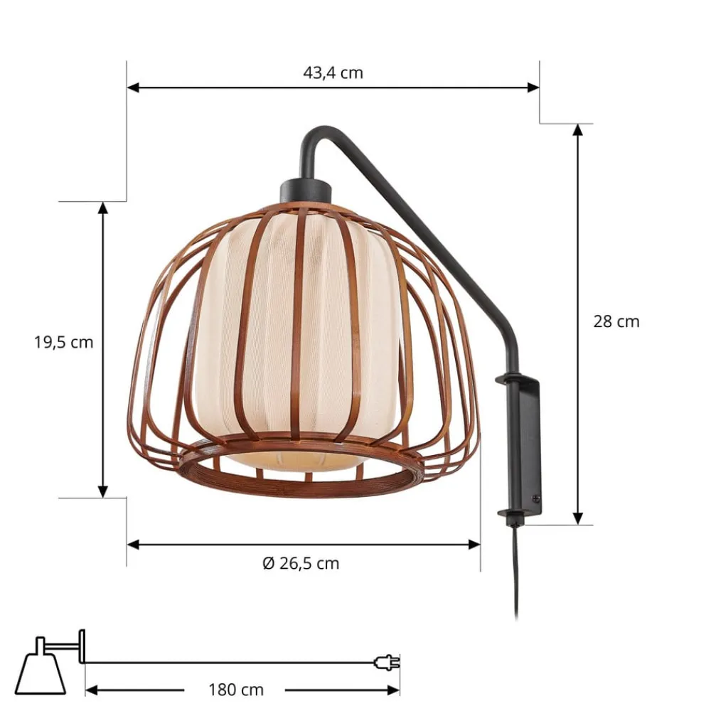 Væglampe Davella forener skandinavisk elegance med bambus’ naturlige skønhed. Samspillet mellem mørkt træ, beige og sort giver ethvert rum en varm og indbydende atmosfære. Kombinationen af bambus og tekstil sikrer et tiltalende look.