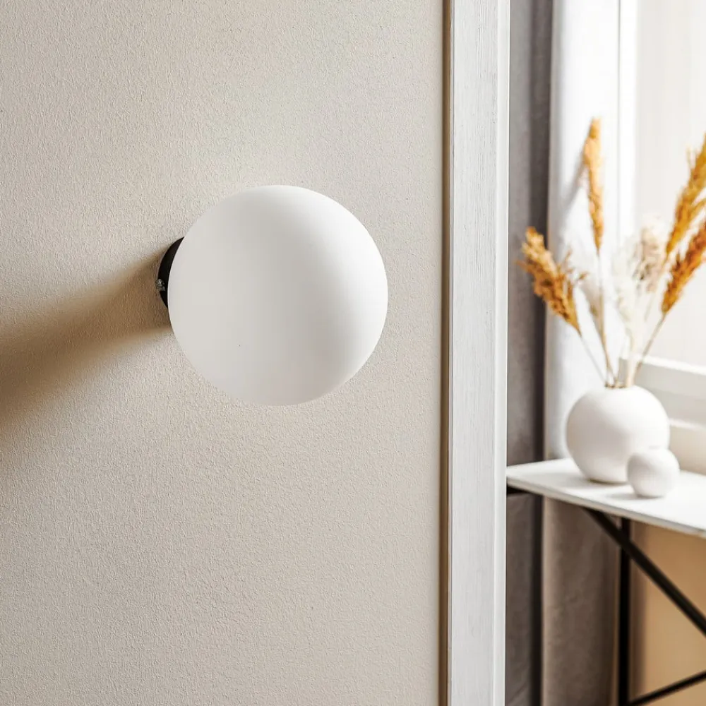 Væglampe Dione kombinerer moderne design med materialer af høj kvalitet og er et blikfang i ethvert rum. Fremstillet af robust metal og elegant, frostet glas, passer den perfekt ind i forskellige indretningsstilarter. Den elegante kombination af sort vægbeslag og hvidt frostet glas skaber et harmonisk udseende, der sætter accenter i både stuen, entreen, soveværelset eller spisestuen.