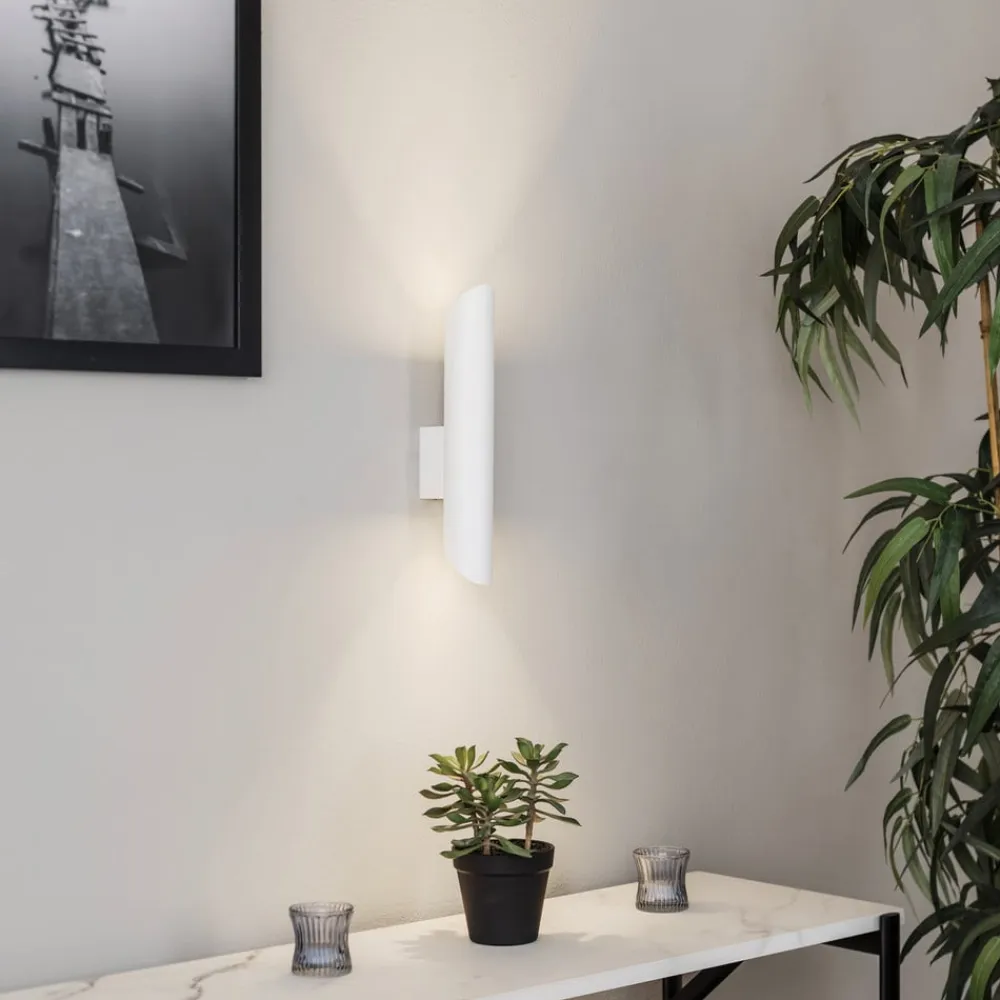 Væglampe Eye Cut i hvid forener moderne design med funktionel alsidighed. Den er fremstillet af højkvalitetsstål og imponerer med sine klare linjer og elegante farve. Den standardiserede fatning GU10 gør det nemt at udskifte LED-lyskilden, hvilket ikke kun sikrer en lang levetid, men også energibesparende lys. Den europæisk fremstillede lampe passer perfekt ind i forskellige boligområder, hvad enten det er i stuen, soveværelset, entreen eller spisestuen.
