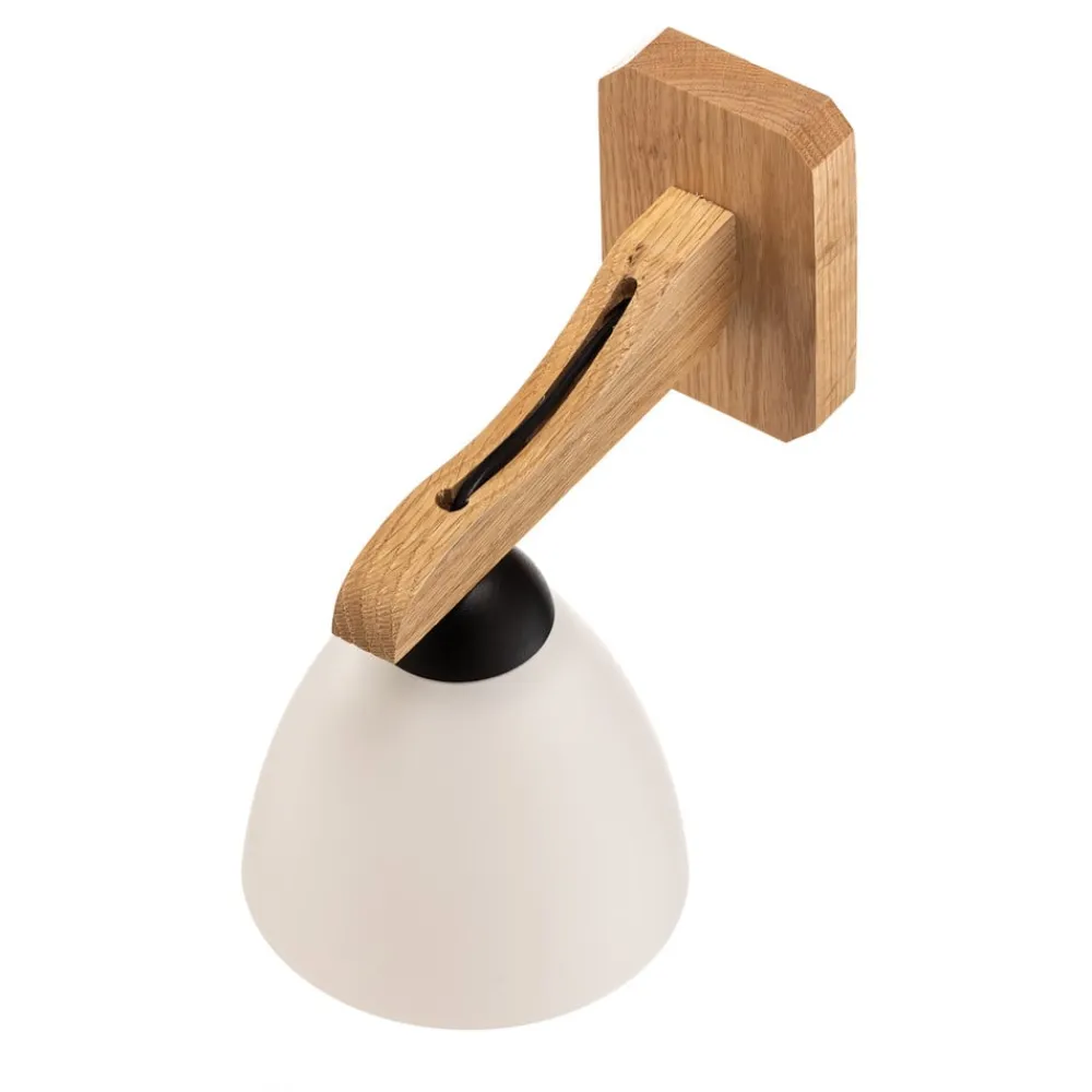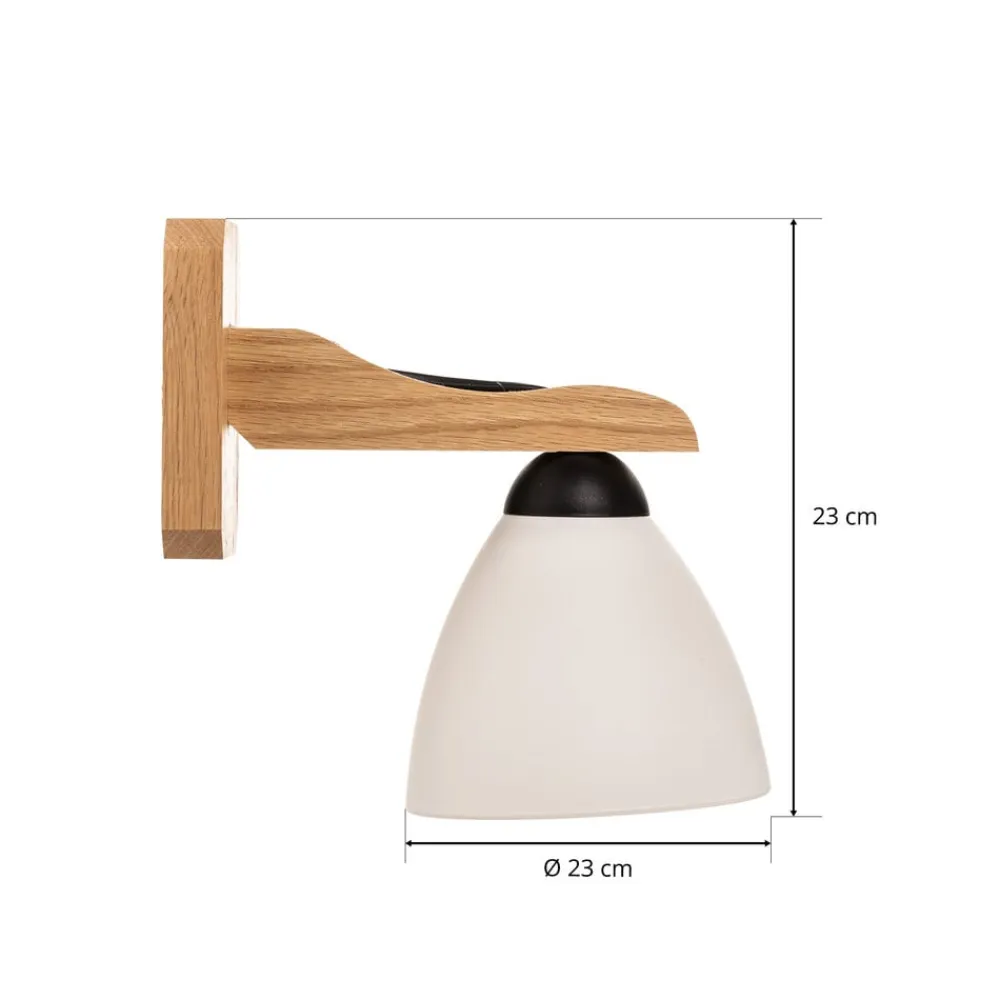Væglampe Haro forener moderne skandinavisk design med den naturlige skønhed af træ og glas. Glasskærmen i kombination med det lyse egetræ giver ethvert rum en varm og indbydende atmosfære. Denne lampe er ideel til stuen, soveværelset og spisestuen og giver mulighed for at justere lysintensiteten individuelt via en ekstern dæmper.