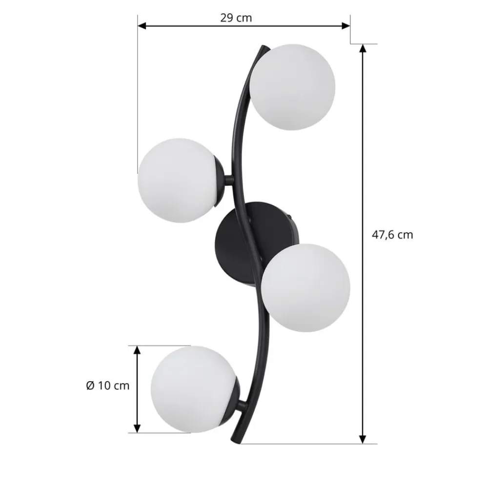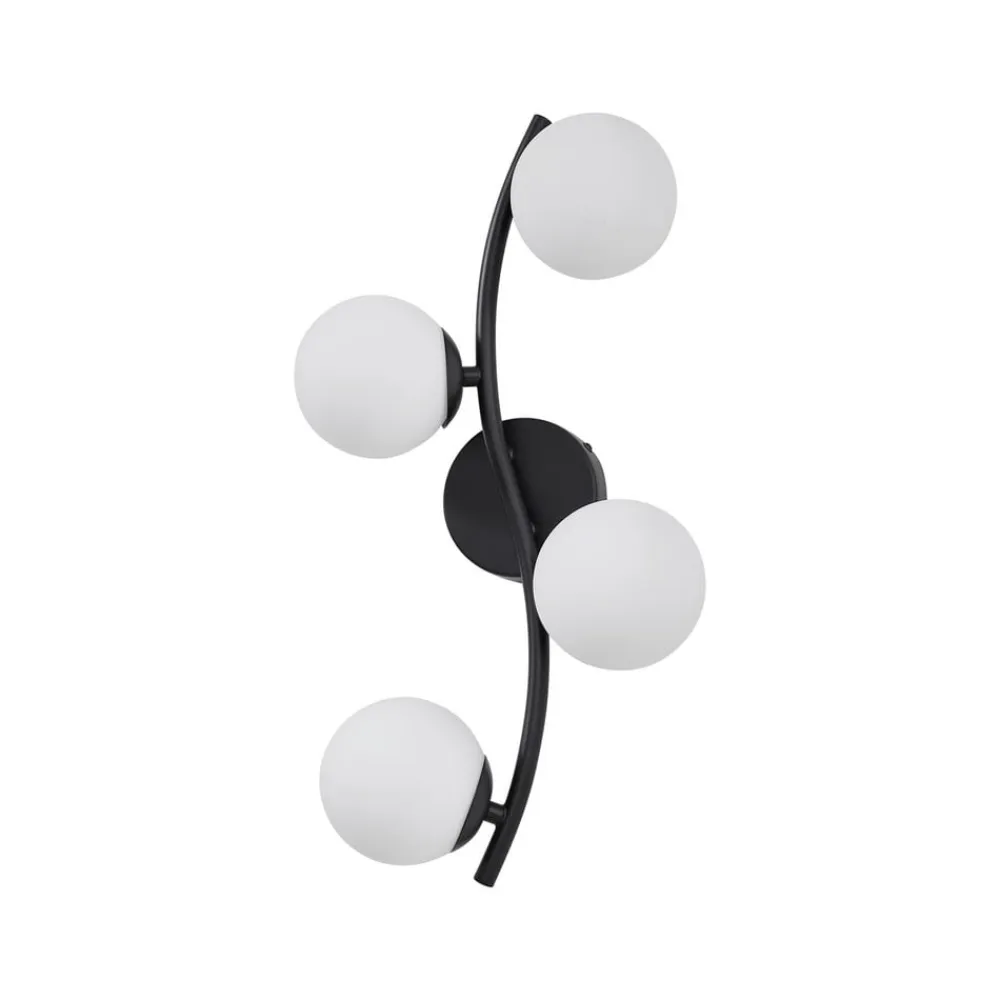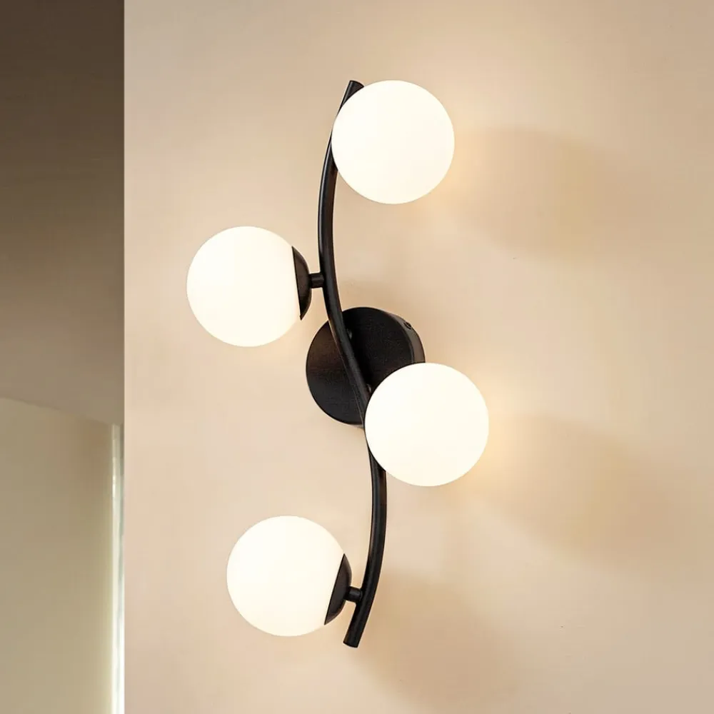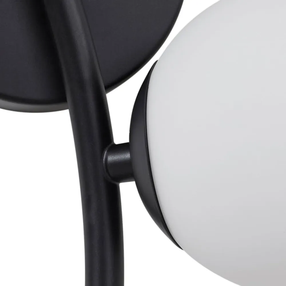 Væglampe Josiana kombinerer opal glas med en elegant sort finish og passer perfekt ind i moderne stuer og spisestuer. Samspillet mellem glas og metal giver lampen en tidløs æstetik, der imponerer i både minimalistiske og mere krævende indretningsstilarter. Den harmoniske farve i hvid og sort skaber en stilfuld atmosfære og understreger lampens alsidighed.