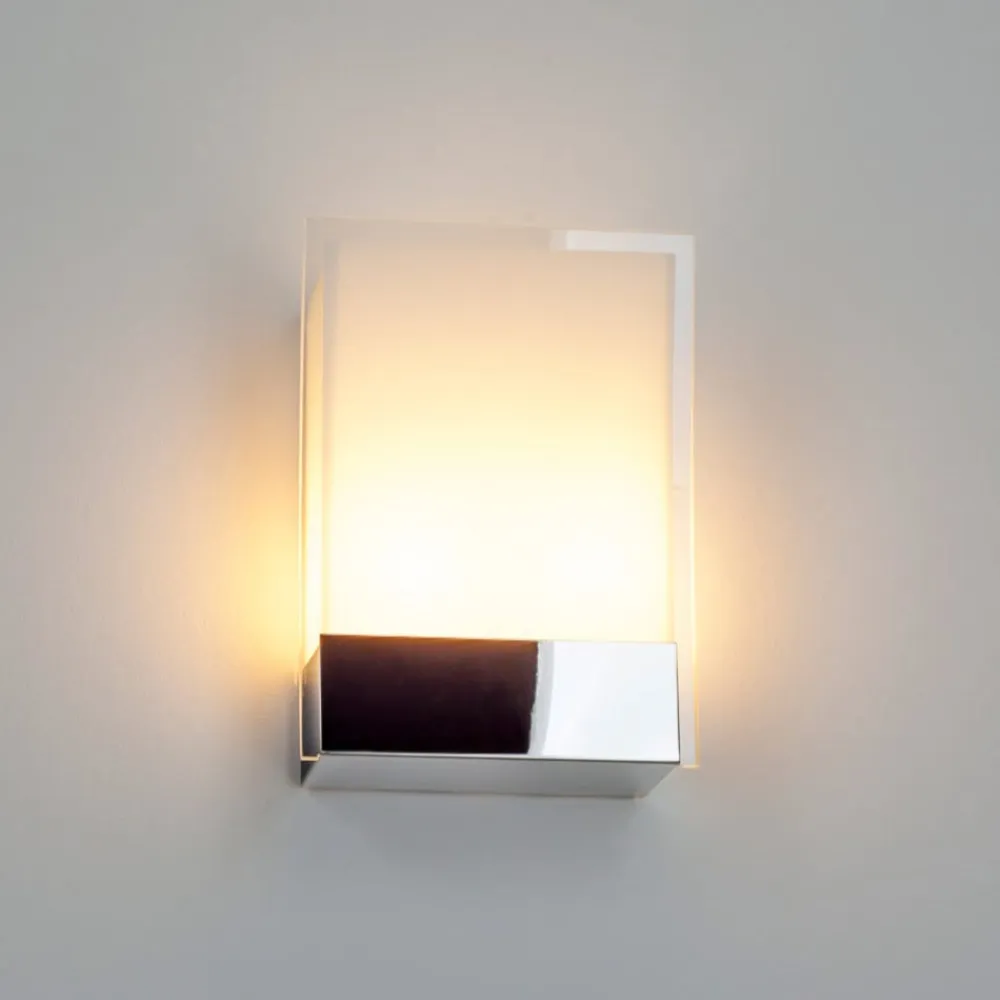 Væglampe Malthe overbeviser med stil og elegance. Den forreste glasblænde hælder let fremad, hvor glaspladen for det meste er satineret, men har en klar kant. Denne kombination virker særdeles elegant og passer til et moderne miljø. Den hvid satinerede glasoverflade giver desuden en meget jævn lysfordeling, som normalt opleves som hyggelig. I bunden suppleres væglampe med et kromelement, hvilket skaber en harmonisk kontrast.