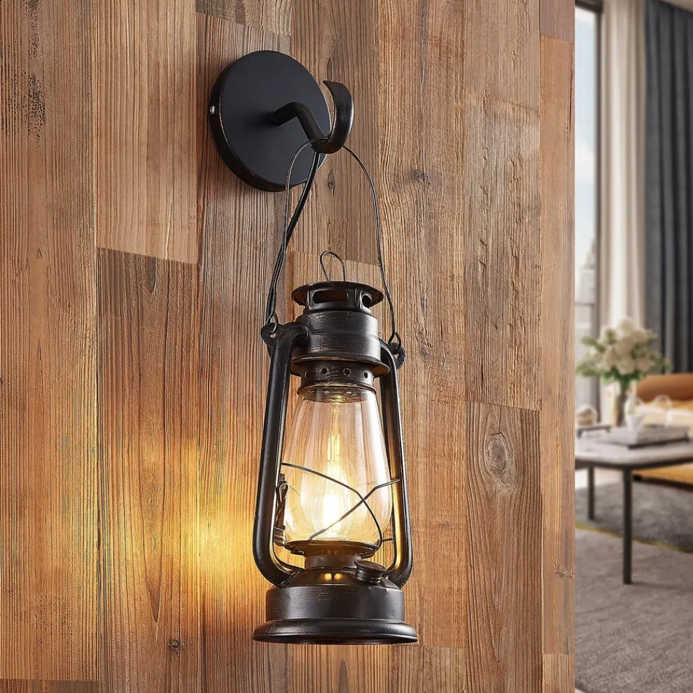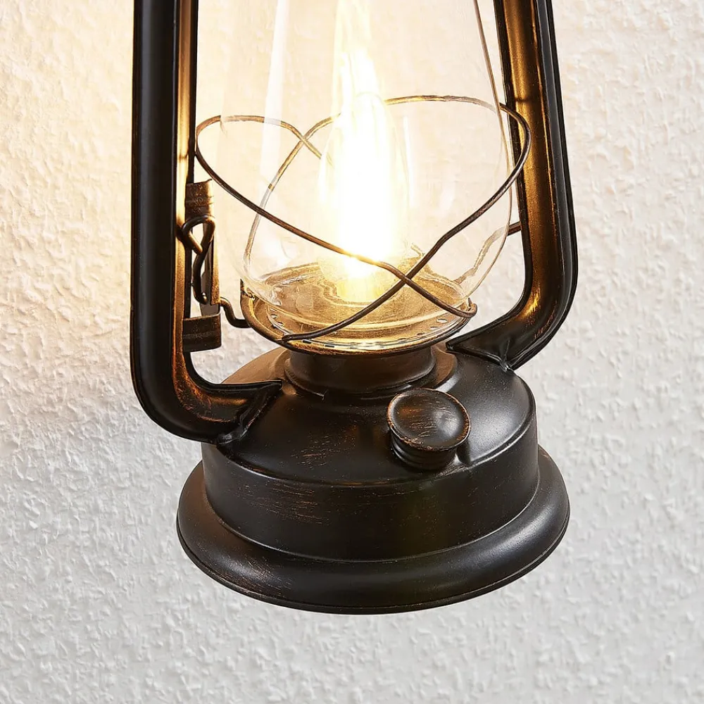 væglampe Raisa, rustfarvet, metal, lygte, E14^Lindby Online