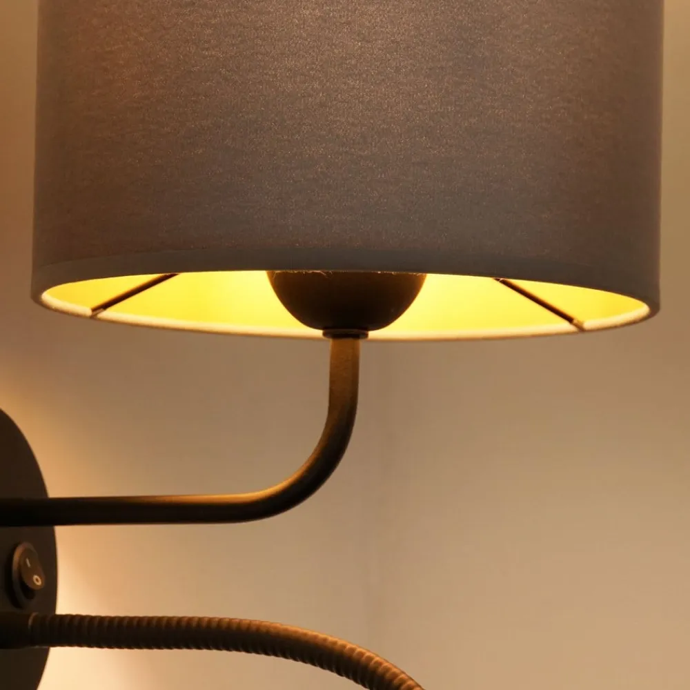 Væglampe Roller forener stilfuld elegance med praktisk funktionalitet. Lampen er fremstillet af højkvalitets velour og robust metal og fås i en flot grå-sort farve. Denne kombination giver ethvert rum, hvad enten det er stuen eller soveværelset, en helt særlig atmosfære. Den integrerede læselampe giver desuden målrettet belysning, der er ideel til afslappede læseaftener.