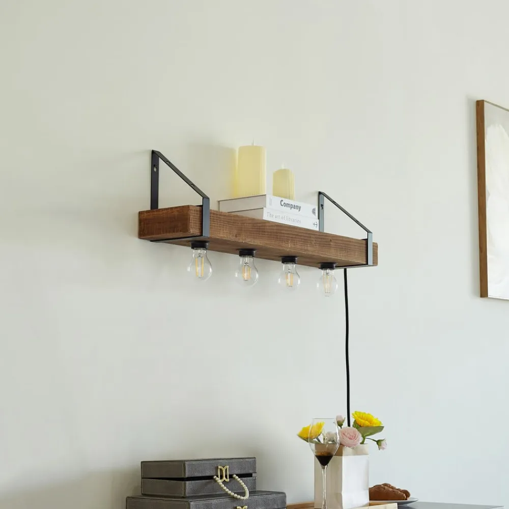væglampe Vatana, træ, stik, USB-port, 80 cm^Lindby Sale