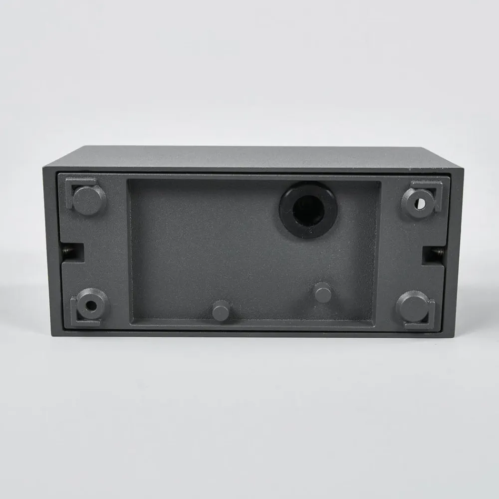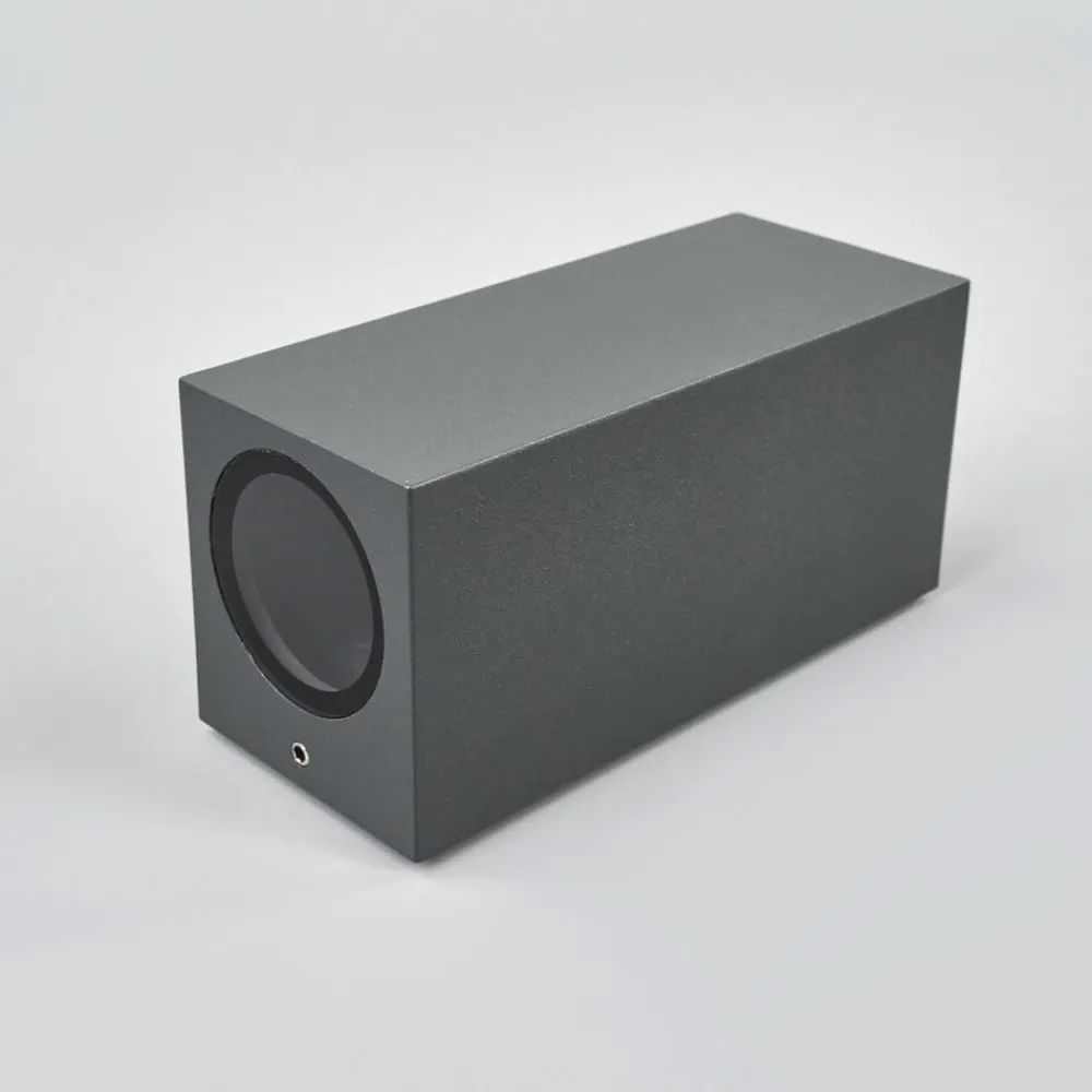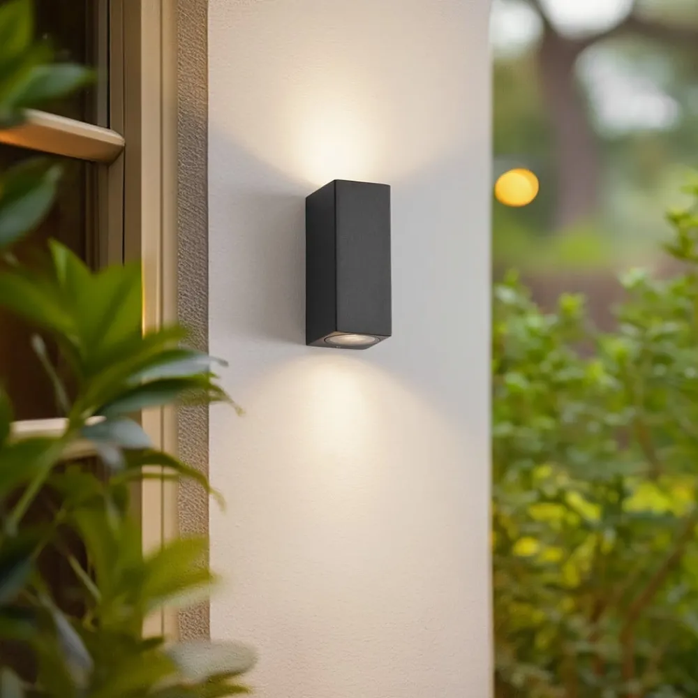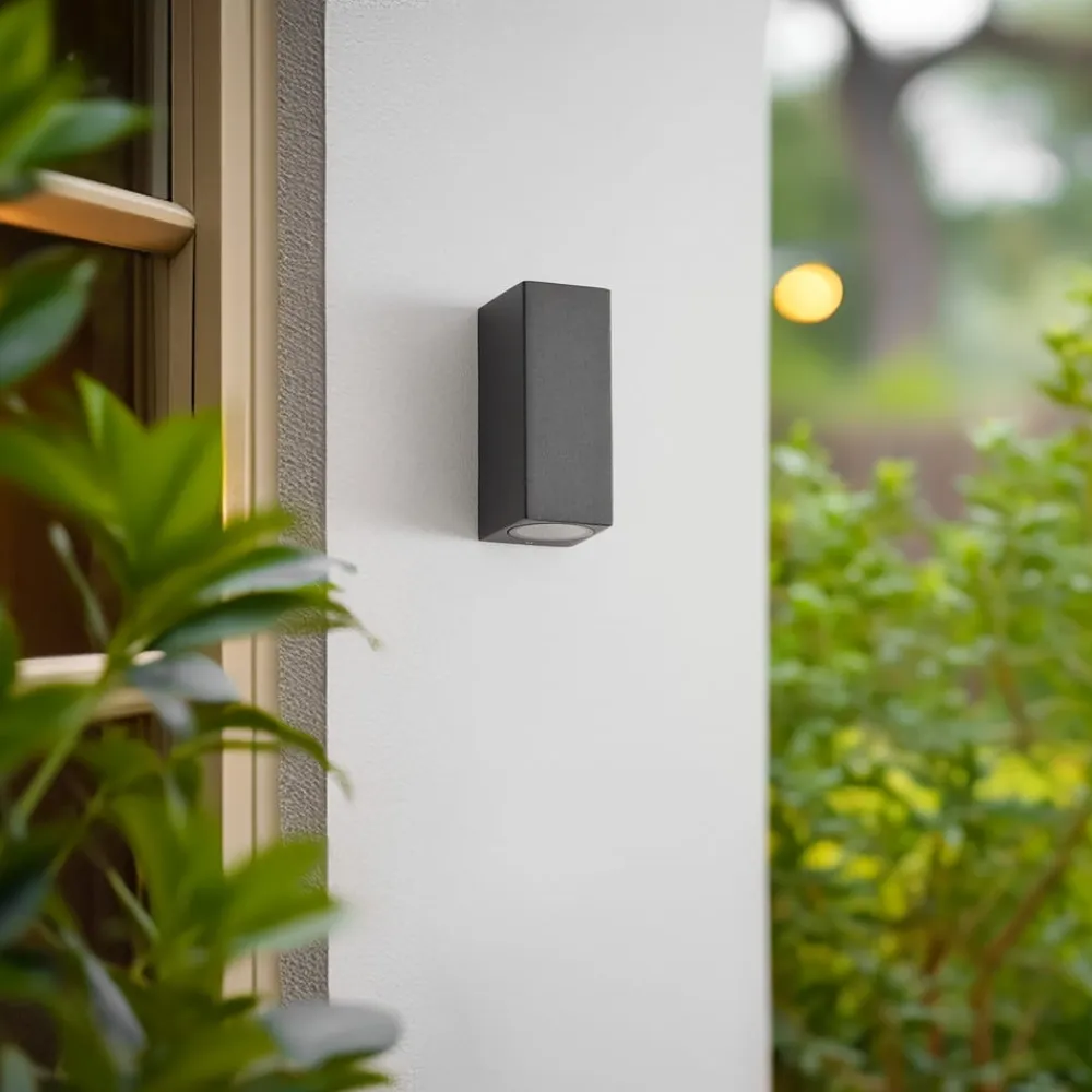 Enkel udendørs væglampe Xava med dobbelt lysudstråling Xava har et særligt ligetil design, der er præget af behagelig enkelhed. Den udendørs væglampe består af en støbt aluminiumskrop med en mørkegrå finish, og pærerne er placeret øverst og nederst, så lyset også skinner i disse retninger. Især ydervæggen på en moderne bygning har gavn af installationen af denne udendørs væglampe med sit klare designsprog.
