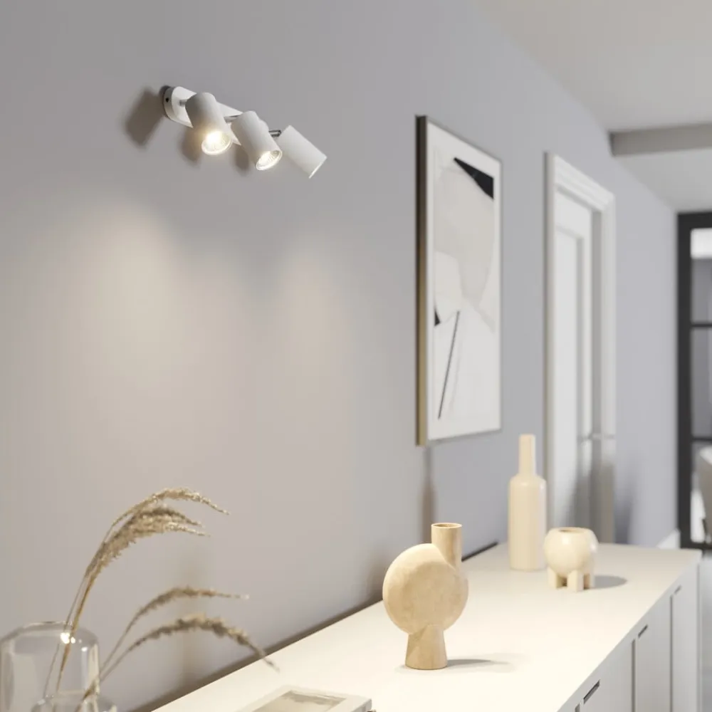 Vægspotten Eye Spot med 3 lyskilder i elegant hvidt design forener moderne design med funktionel fleksibilitet. Denne spotlight er fremstillet af højkvalitetsmetal og passer perfekt ind i forskellige boligmiljøer som stuer, entreer, køkkener og spisestuer. Konstruktionen med 3 lyskilder muliggør målrettet belysning, der både sætter accenter og skaber en behagelig grundbelysning.