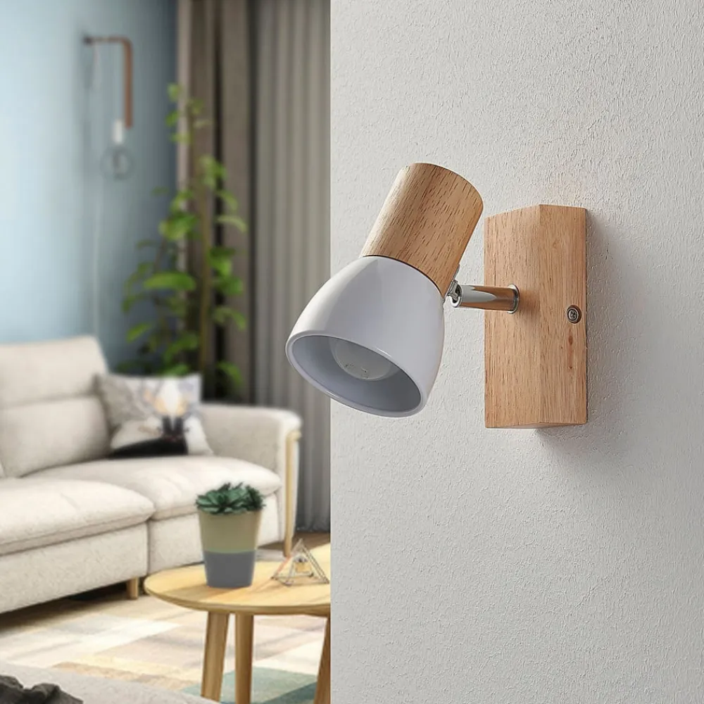 Lindby vægspot Thorin, 14 cm høj, hvid, træ, E14
