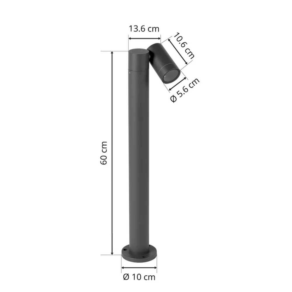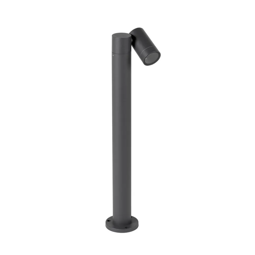 Slank Tulimar vejlampe med et fleksibelt spot Tulimar vejlampen er lavet af robust aluminium og har en mørkegrå overfladefinish, som er meget trendy i øjeblikket. Designet kan integreres i forskellige miljøer uden umiddelbart at falde i øjnene. Denne vejlampe kan monteres med enhver GU10-lyskilde, hvor især økonomiske LED-pærer er en fordel her. Det cylindriske spot kan nemt justeres efter behov, så brugeren hele tiden kan tilpasse stråleretningen.