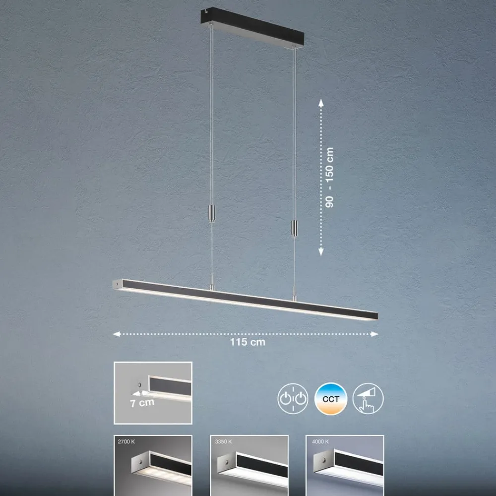 Vitan LED-pendel, sandsort, længde 115 cm, 2-lys, CCT^FISCHER & HONSEL Best