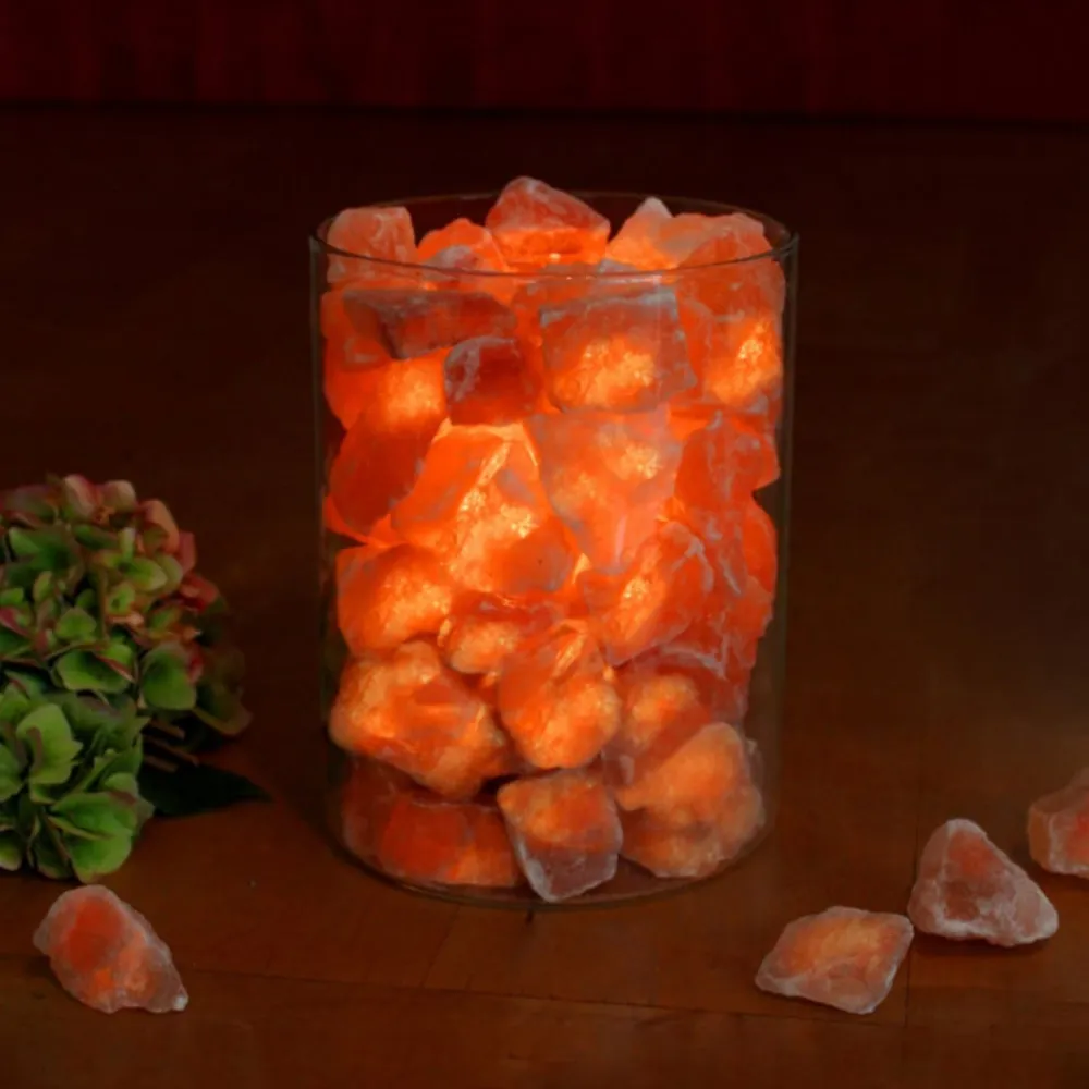 Saltkrystalpejsen i et glas er et meget specielt dekorativt objekt. Det brandsikre glas indeholder et ca. 14 cm højt palmevokslys omgivet af saltkrystalsten i forskellige størrelser. Når stearinlyset tændes, bliver de smukt oplyst.