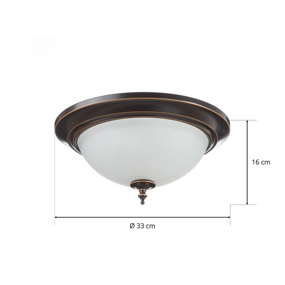 Den klassiske, runde loftlampe Harwell imponerer med sit antikke touch og klare linjer med bløde overgange. Opal opal opalglas diffusor kurver lidt ind i rummet og lyser det op over et stort område. Udstyret med to lyskilder er loftlampe lys og imponerer også i store rum eller højt til loftet. Det pryder gangen samt stuen med stil og elegance og kan udstyres med et bredt udvalg af E27-lamper. Det er især effektivt ved at vælge en LED-lyskilde.