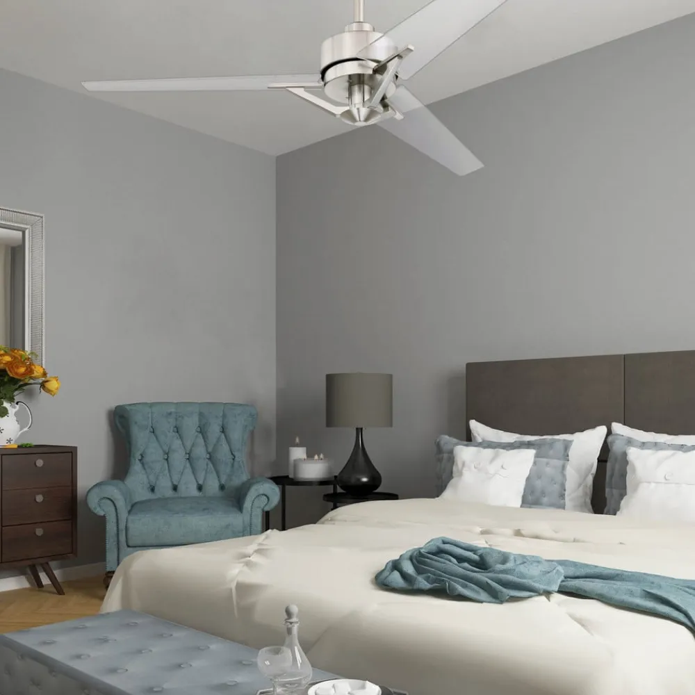 Loftventilatoren Julien er med sit udseende et ægte designelement, også når den ikke er i brug. Kabinettet er dekoreret med en finish i børstet nikkel og har et topmoderne design. De tre transparente vinger passer perfekt ind i dette look og understøttes yderligere nedenfra af filigrane stivere. En passende fjernbetjening er inkluderet i leveringen. Den medfølgende mellemstang skal bruges til montering. Passende forlængerstænger fås separat som tilbehør.