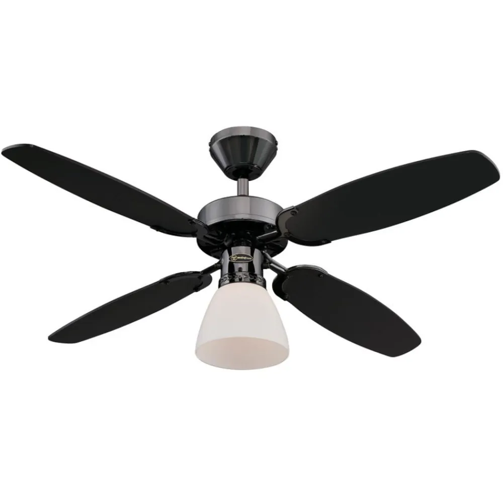 Loftventilatoren Capitol imponerer med klare linjer og en æstetisk designet mælkeglaslampe i midten, samt med dens effektfulde og variable monteringsmuligheder. Udstyret med en trækkontakt. En fjernbetjening eller vægkontakt kan købes under tilbehør.