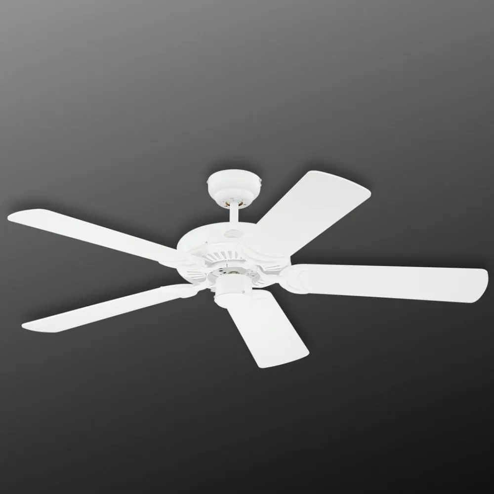 Monarch loftventilatoren sikrer et behageligt indeklima hele året rundt. Ventilatorens krop er lavet af stål af høj kvalitet, mens bladene er lavet af hvidt plastik med en rattanbeklædning på den ene side. Bladene kan derfor varieres alt efter indretningstypen.