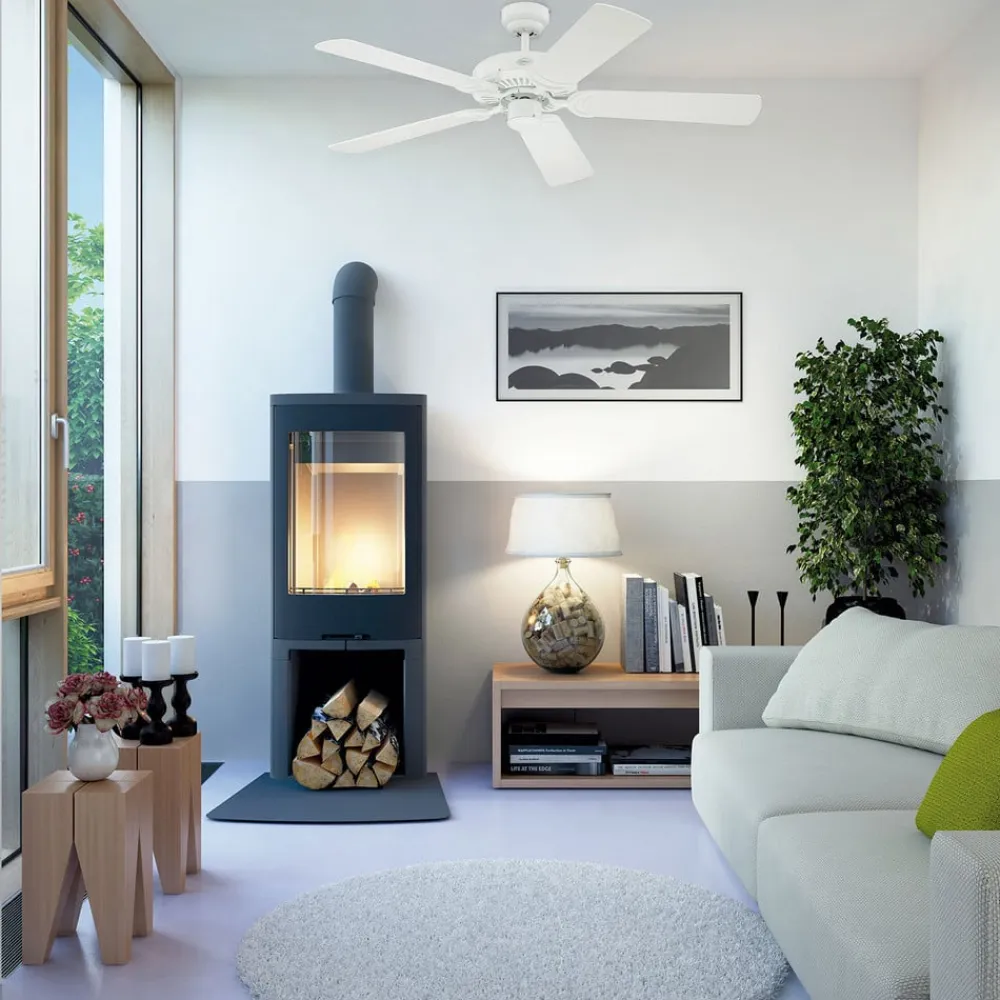 Udstyret med fremad- og baglænsfunktion: Mens rotorbladene i sommermånederne kører mod uret for at holde rumluften kølig, roterer de om vinteren med uret, hvilket sikrer en bedre fordeling af varmen og en besparelse på op til 30 % i varmeudgifterne.