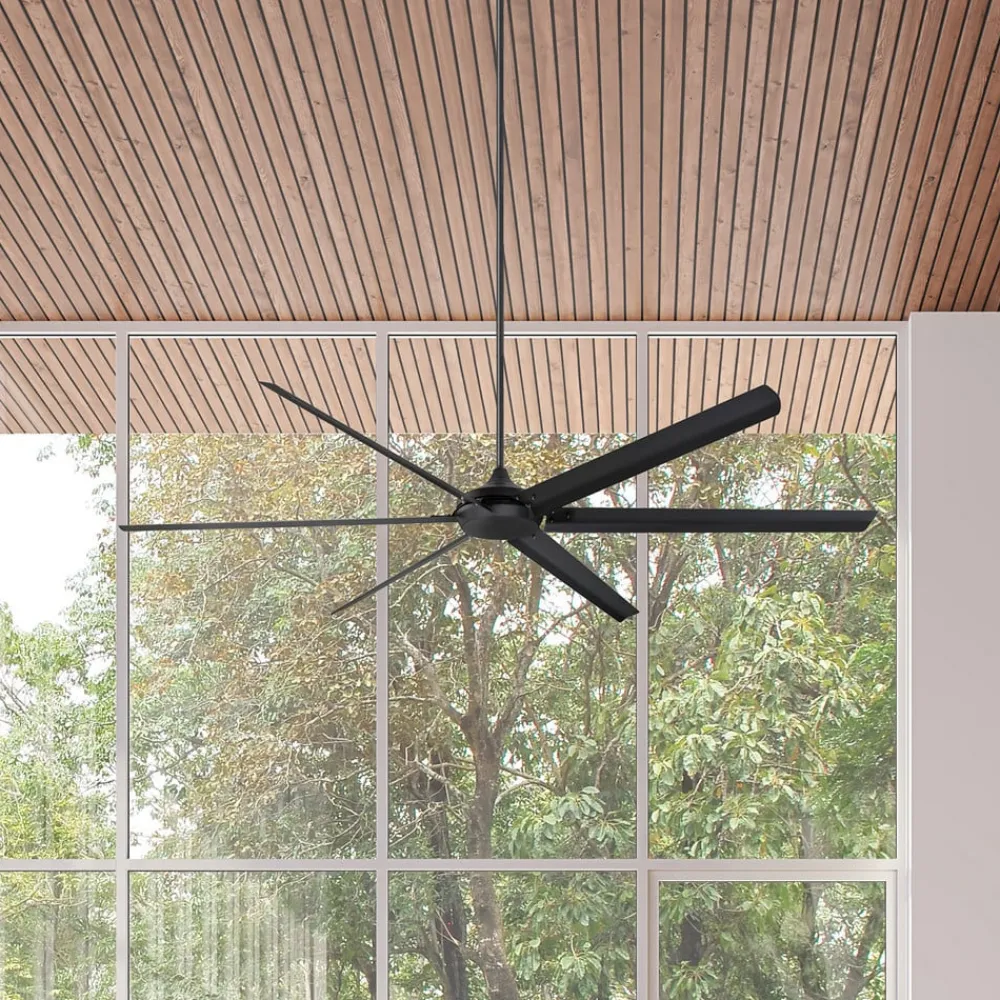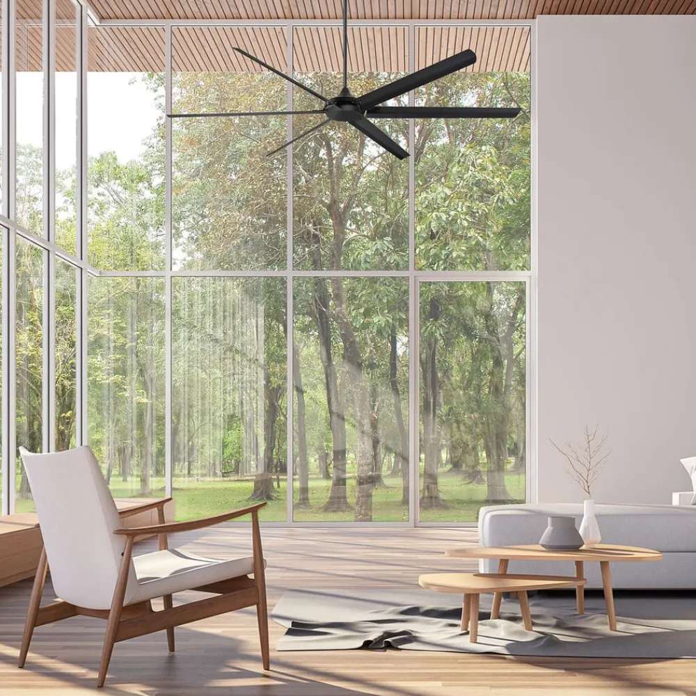 Den matsort lakerede loftventilator Widespan er udstyret med seks vinger af aluminium. Det har et enormt spænd på over 250 cm, hvilket gør det især velegnet til store boliger og erhvervsområder. Widespan flytter store mængder luft med relativt få omdrejninger i minuttet. Sammen med en jævnstrømsmotor af høj kvalitet giver dette en særlig støjsvag og effektiv drift. Takket være den effektive luftfordeling kan lagre, loftsrum eller værksteder køles uden problemer. Der skal dog tages hensyn til, at en monteringshøjde på mindst 3,05 m over gulvet skal være mulig. Inkl. fjernbetjening.