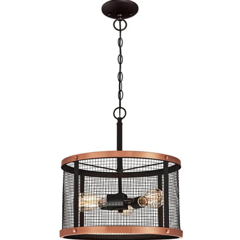 Denne usædvanlige hængende lampe Emelie overbeviser med materiale og form. Det trendy burdesign fanger straks øjet. Skyggen består af et burnet med mange firkantede masker, der giver direkte udsigt over lyskilderne. Cylindrisk og bred slutter lampeskærmen med dekorative, kobberfarvede ringe øverst og nederst, som visuelt fremhæver lampen. For at understrege pendellampe rustikke stil blev der valgt en kæde med grove led som ophæng, hvilket får lampen til at se robust ud. De synlige lyskilder drejes vandret ind i stikkene, der kommer ud fra en fælles Basis fra midten. På grund af den forskellige orientering af lyskilderne dækker lampen et stort område. Lyset kan komme ud direkte i alle retninger. Rundt det fremkalder tiltalende lys- og skyggeeffekter gennem gitteret, som giver rummet et behageligt præg. Det anbefales at vælge glødelamper, såsom rustikke lamper, på grund af lampernes direkte synlighed.