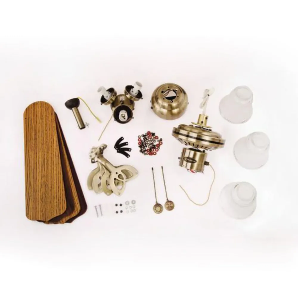 Loftventilatoren Princess Trio er fremstillet af stål og plast og tilbyder både visuel og funktionel kvalitet. På ventilatorhuset med antik messingfinish er der tre lys i ædelt opalglas. De er beregnet til pærer med E14-fatning.