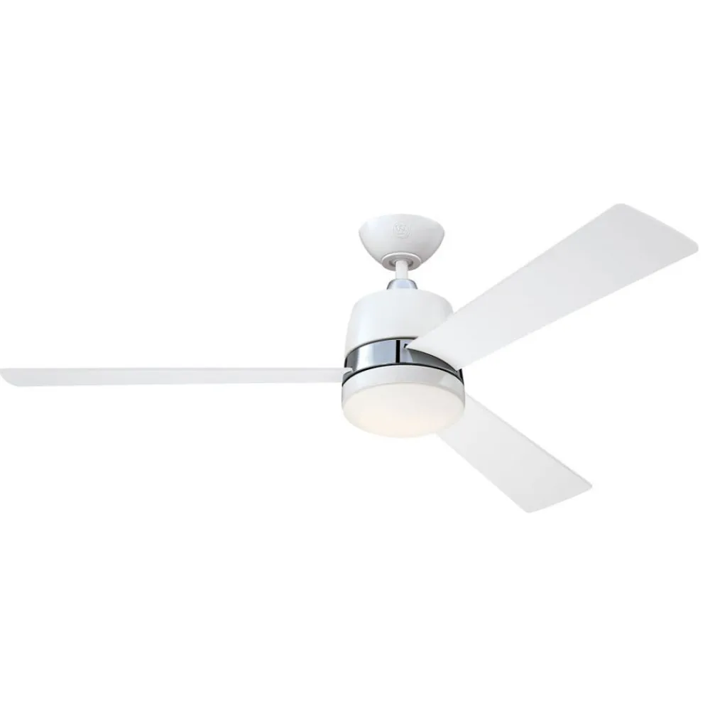 Tristan loftventilator med fjernbetjening, belysning og tre vendbare blade i hvid og lys ahorn