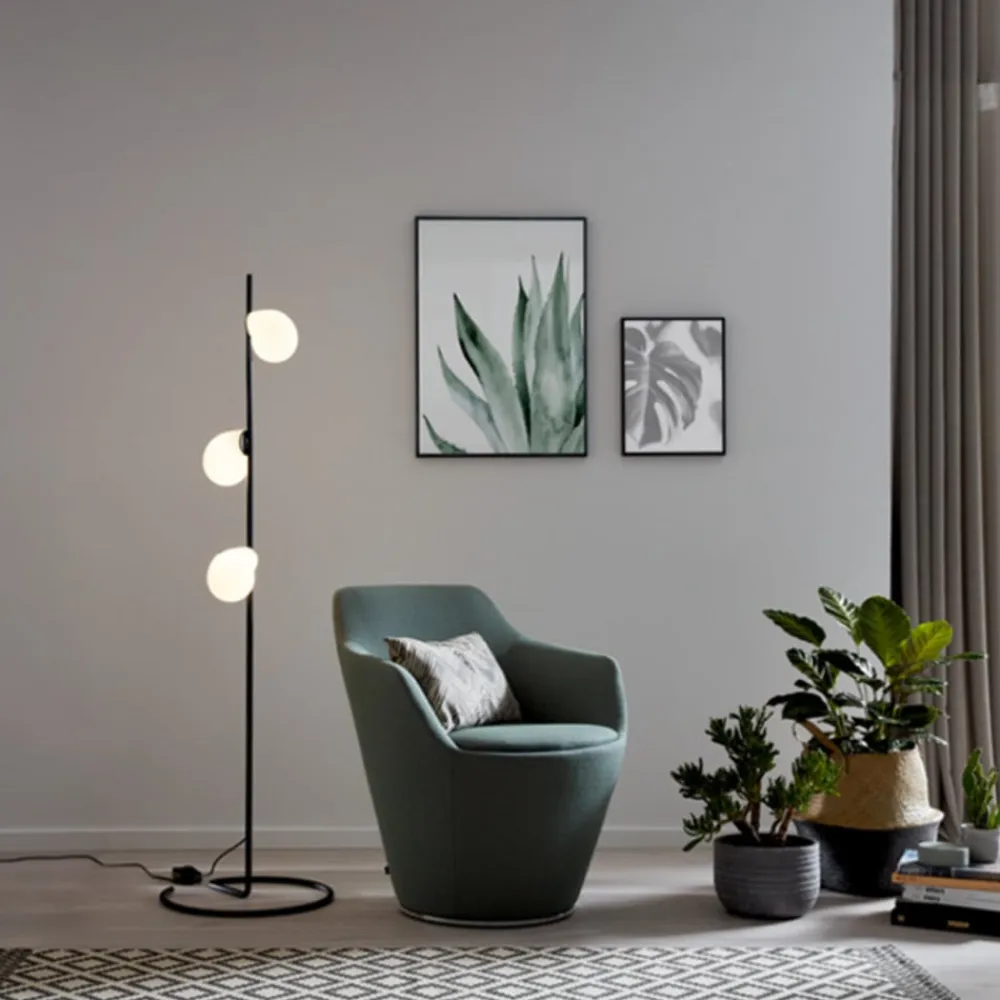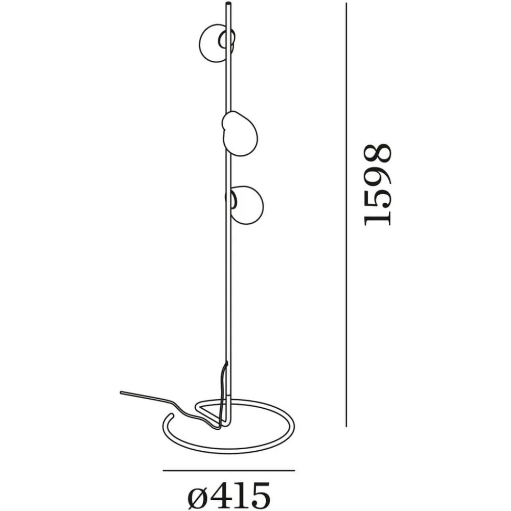 Tre-lys Dro 1.0 Comp gulvlampe med lysdæmper Den tre-lys Dro 1.0 Comp gulvlampe giver ikke kun atmosfærisk, allround accentbelysning, men ser også ud som et smukt dekorativt tilbehør ethvert sted. Tre blæste glas i forskellige højder er fastgjort til den sorte rammestang, som strækker sig opad uden afskærmning, hvilket skaber effekten af dråber, der perler på stangen. G9-lyskilder er indsat i det opalhvide glas og udsender blændfrit lys. Lyskilder med G9-sokkel – herunder energieffektive LED-lamper – kan bestilles separat som tilbehør. En lysdæmperkontakt er indbygget i forsyningskablet, så lysstyrken kan justeres, så den passer til den ønskede stemning.