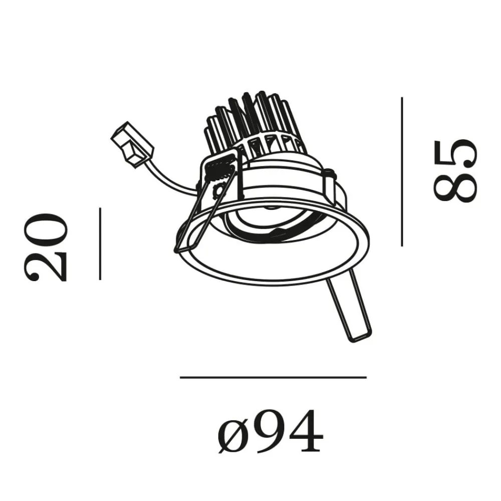 LED-indbygningslampe Deep Adjust: kan drejes 35°, drejes 355° LED-loftindbygningslampen Deep Adjust er ideel til variabelt justerbar loftsbelysning i private og kommercielle områder. Med et drejeområde på 35° og et rotationsområde på 355° muliggør den fleksibelt justerbar lysretning. Deep Adjust kan installeres i lofter med en tykkelse på 4-30 mm og kræver en ballast til drift, som skal bestilles separat via tilbehøret, da den ikke følger med armaturet – Udstrålingsvinkel: 36°