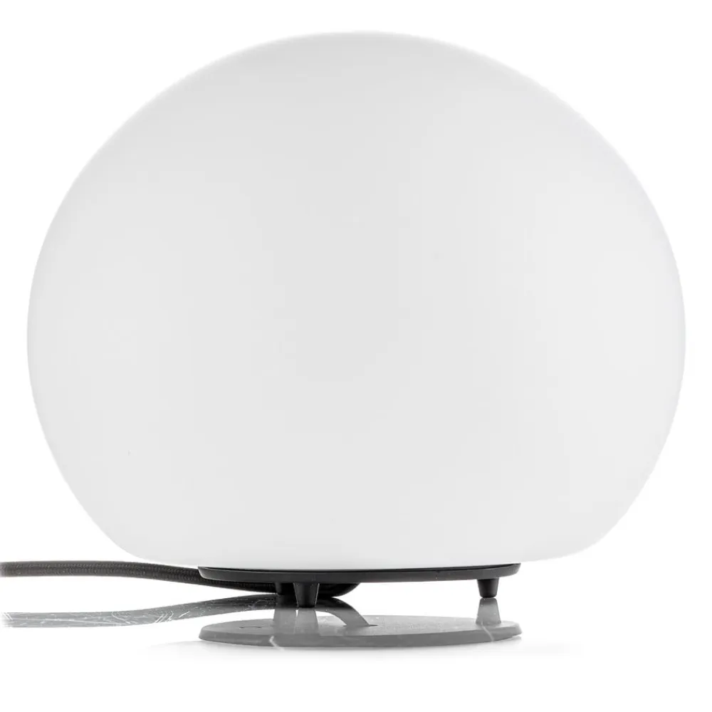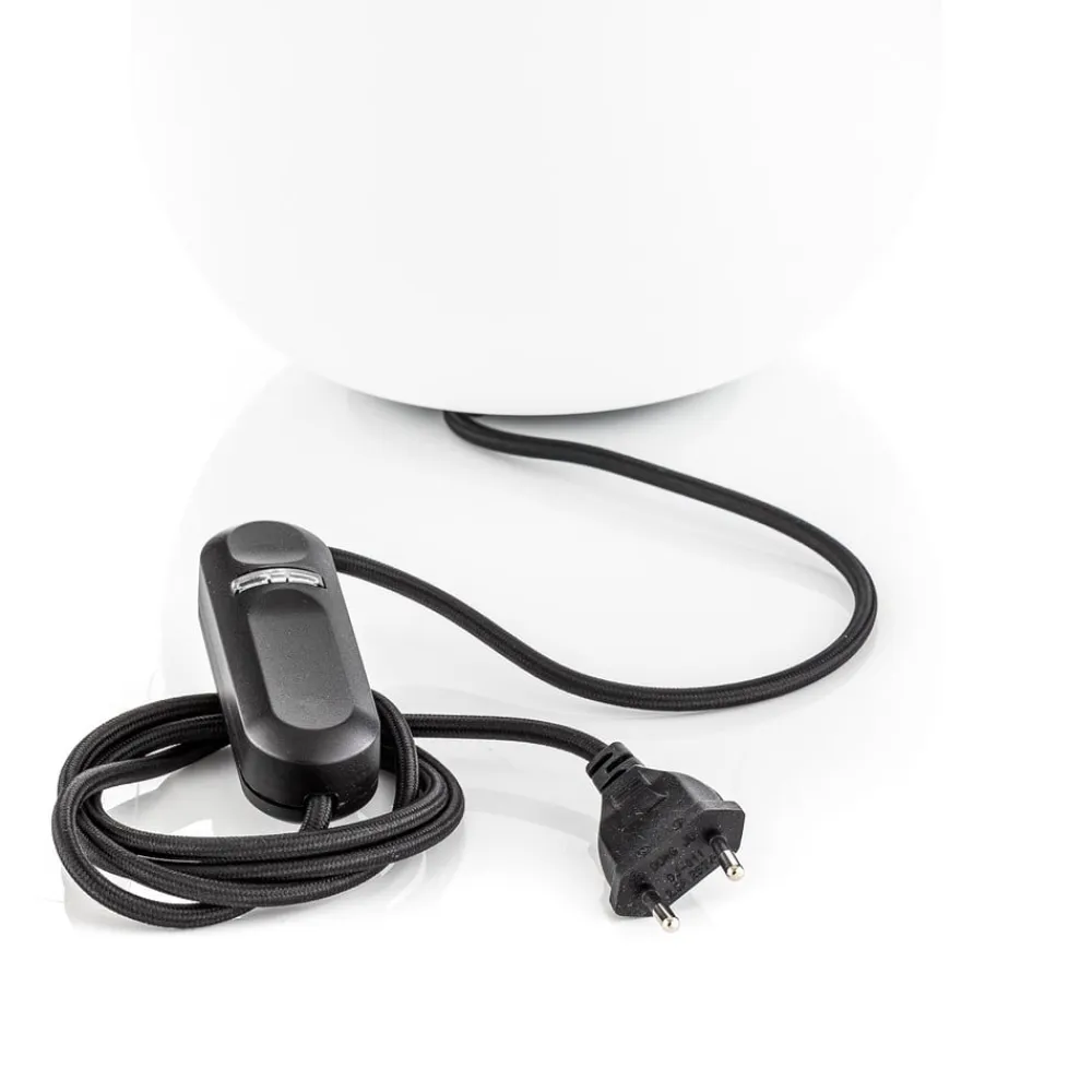 Sfærisk Dro-bordlampe – en klar accentlyskilde Dro-bordlampen har et dekorativt mundblæst lampeglas, der hviler på små sorte fødder, som sikrer lysfordeling hele vejen rundt. Uanset hvor Dro-bordlampen placeres – i vindueskarmen i stuen, på en kommode i soveværelset eller på natbordet – skaber den en lys, stemningsfuld accent, uanset hvor den placeres. Det sorte tekstilkabel er udstyret med en lysdæmperkontakt, som kan bruges til at dæmpe belysningen efter behov og tilpasse den til individuelle behov.