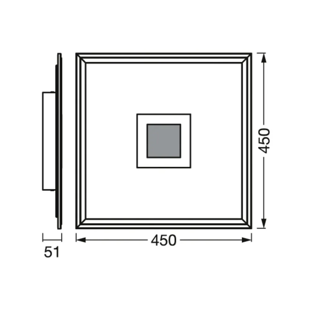 Firkantet, ekstra flad Planon Plus Hole Backlight overflademonteret LED-panel med LEDVANCE SMART+ WiFi-teknologi Med sit firkantede design, som kendetegner både den ydre ramme og en central fordybning, er LED-loftlampen Planon Plus Hole Backlight det perfekte valg til moderne interiør. Panelet er også funktionelt up-to-date. Det har LEDVANCE SMART+ WiFi-teknologi, som muliggør tilslutning til en smartphone/tablet eller smart integration via WLAN. Planon Plus Hole Backlight giver direkte belysning og oplyser også loftet; disse kan styres separat med hensyn til lysstyrke, farvetemperatur og farvetone. For eksempel kan effektiv rumbelysning i varmhvid til dagslys lysfarve og farverige lysaccenter i loftet implementeres samtidigt. Tekniske data / kompatibilitet: – Kan styres via gratis LEDVANCE SMART+ WiFi-app (med mindst Android 4.4 eller iOS 9.0); muliggør forudindstillinger og automatisering – Stemmestyring via Google Assistant eller Amazon Alexa mulig – RGB og farvetemperatur justerbar: 2.700 K – 6.500 K – Dæmpbar – Netværksprotokol: WiFi
