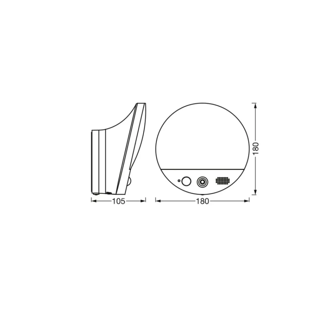 LED-kameralampe ROUND til udendørs brug med LEDVANCE SMART+ WiFi-teknologi Kameraet har HD-livebilledoverførsel. Så snart sensoren aktiveres, optager kameraet denne sekvens og gemmer den. Sensorens følsomhed og belysningstid kan indstilles individuelt